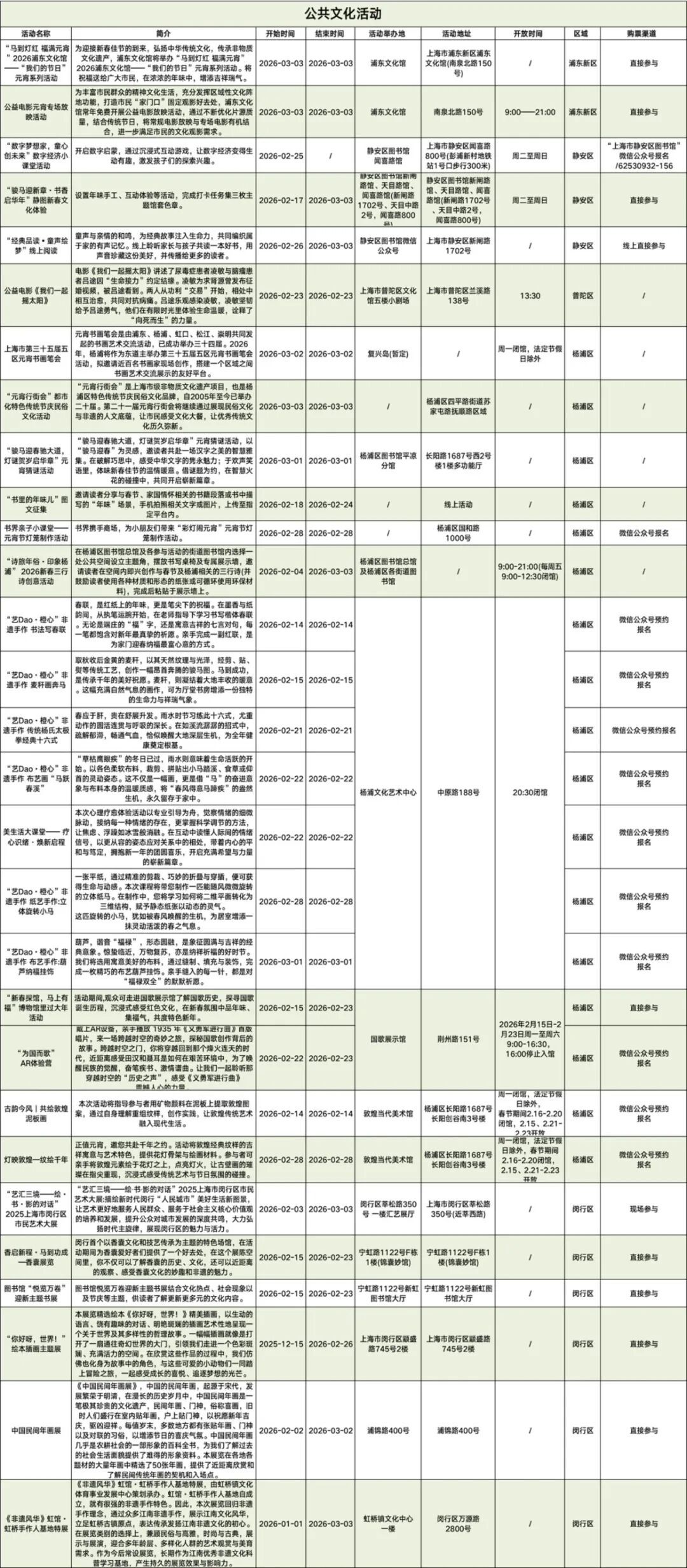 新春将至,杨浦、浦东、黄浦、徐汇、长宁、静安、普陀、虹口、闵行等九个区早已备下满满惊喜!从重磅大展到灯会盛宴,从传统年俗到先锋艺术,从亲子互动到文博探秘,一场场特色活动串联起沪上新春的热闹图景,邀你共赴这场属于上海的新春文旅盛宴。一起看看杨浦有哪些活动→