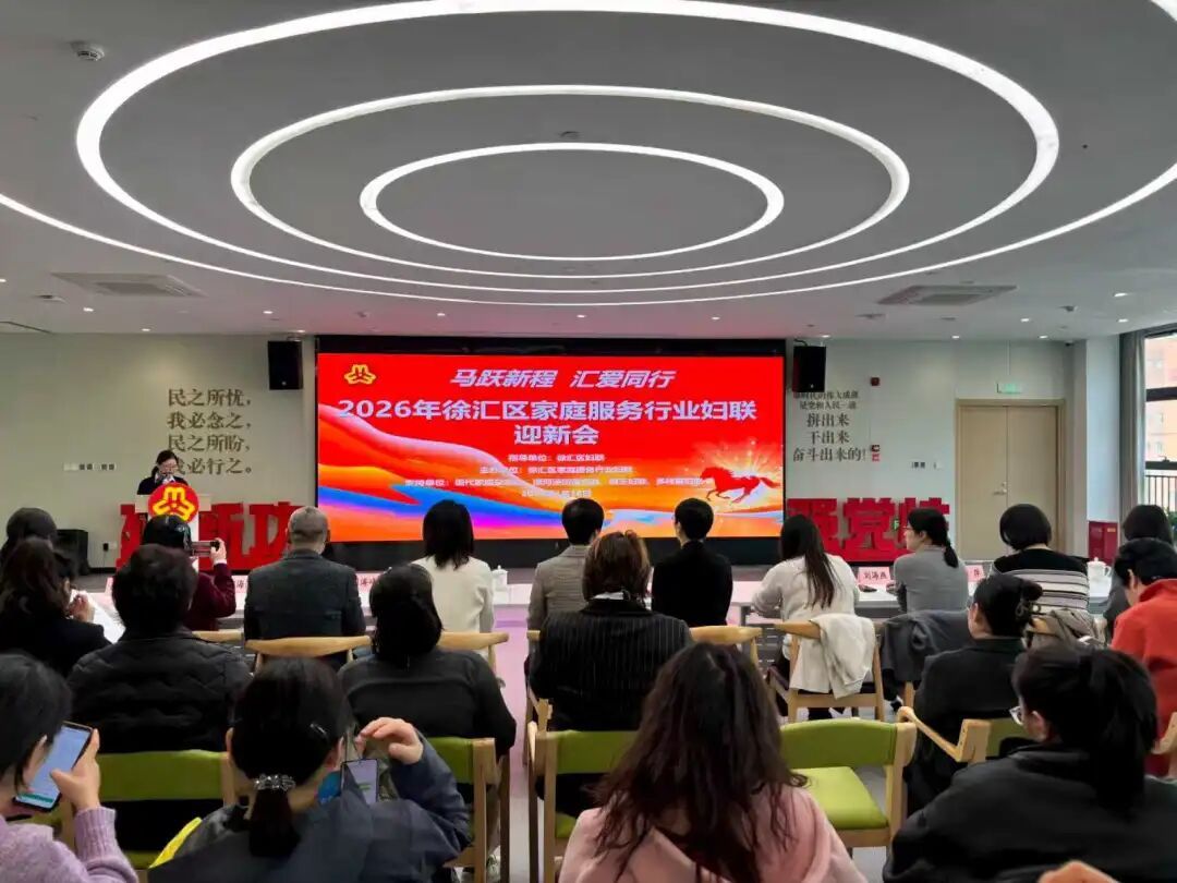 “马跃新程 汇爱同行”2026年徐汇区家庭服务行业妇联迎新会,日前在漕河泾街道石龙党群服务中心举行,来自各企业的家政从业人员齐聚一堂。 徐汇区家庭服务行业妇联迎新会现场 在活动现场,徐汇区妇联工作人员为行业女性代表逐一送上春节暖“新”包与慰问信,亲切交流中传递着“娘家人”的深厚情谊。 行业女性代表接收春节暖“新”包 5个新建的巾帼家政暖心驿站在活动现场正式发布。徐汇区家庭服务行业妇联与区物业管理行业妇联相关负责人共同启动了“物业+家政”社区服务公益行,并号召更多企业通过信息化管理、特色服务与公益活动,为社区提供优质家庭服务贡献巾帼力量。 5个新建的巾帼家政暖心驿站正式发布 据了解,这些驿站是2025年以来徐汇区妇联联动多个部门,探索“物业+家政”服务模式的落地成果,致力于为从业人员打造“暖心加油站”,推动社区与行业协同发展。 在上海市家政技能赛获奖的选手分享了参赛心得,全国妇联三星级服务机构代表交流了服务经验,共同呼吁行业以赛促学、提升品质。徐汇区家庭服务行业妇联相关负责人还宣读了“稳岗留工”倡议书,号召从业人员与机构携手保障服务供应。 活动现场还设置了迎新游园会,家政员们积极参与互动,在欢声笑语中提前感受到节日氛围与“娘家人”的温暖祝福。 记者:李梦婷、朱昱伟 编辑:罗时珎 转载请注明来自上海徐汇官方账号