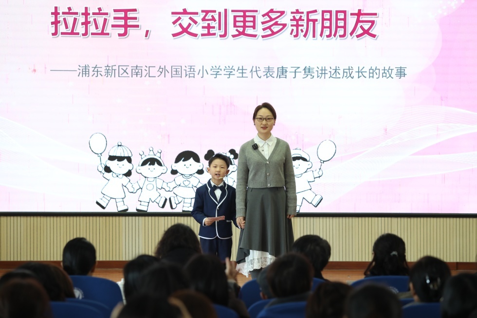 “幼小衔接不是一场短跑冲刺,而是一段需要我们和孩子一起慢慢走的旅程。”唐子隽妈妈感慨,自己和孩子是浦东创建“实验区”、开展幼小衔接创新探索的第一批受益者。面对台下新一级的学生家长,她道出了心声和期待:“我们不做指挥者,不当催促者,要做孩子最坚定的陪伴者与最温暖的守望者。”
