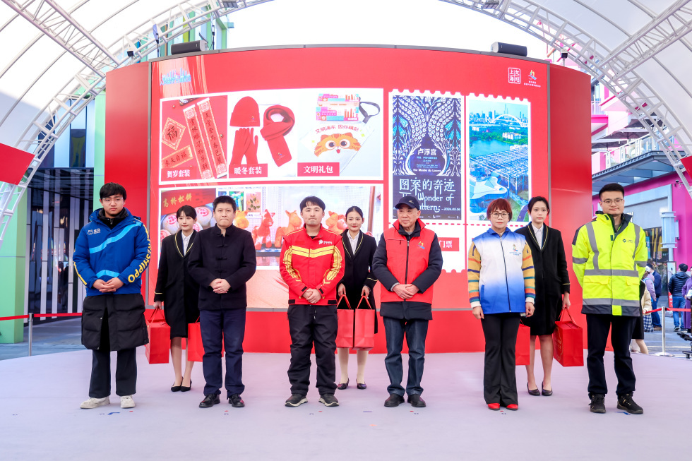活动现场,主办方为不同行业的一线工作者送上“文明实践暖新春礼包”。其中,外卖骑手苟诗意因在严寒中英勇救助落水女童的感人事迹,光荣上榜 2025年“中国好人榜”。全国文明家庭、上海市优秀志愿者等先进典型带头讲好中国故事和节日习俗,为市民送上“贺新春 送祝福”文明过春节宣传。