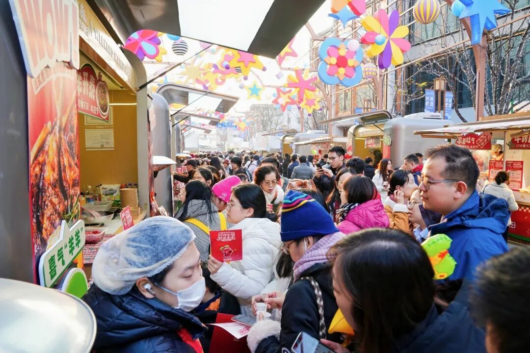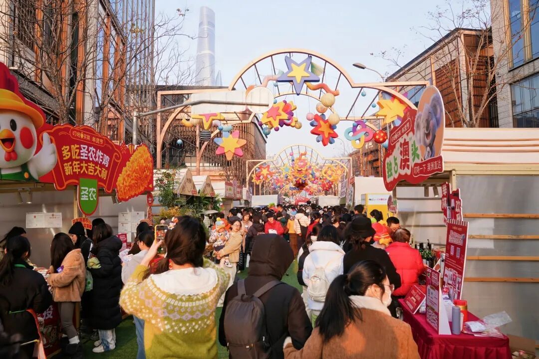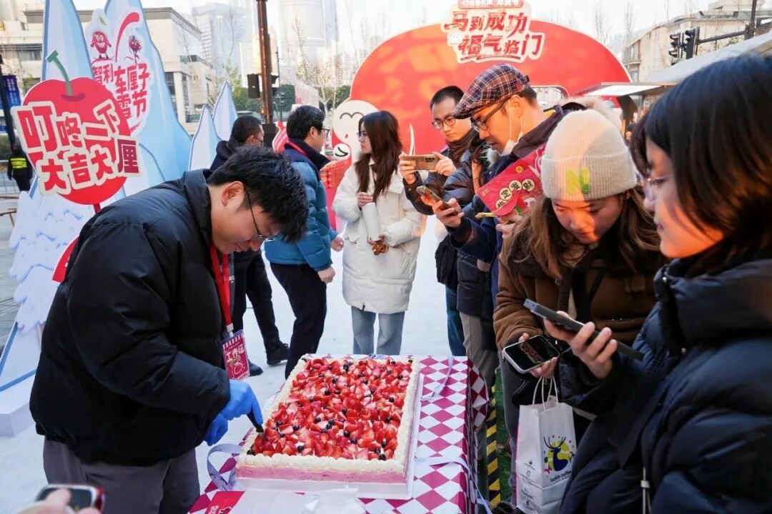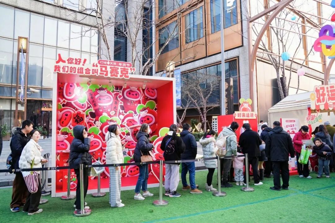 元气补给站前排起了长龙,市民们纷纷领取“元气妙方”;打卡拍报机前闪光灯不断,年轻人排队领取专属的“头条大片”;亲子乐园里,海洋球池成为了孩子们的欢乐海洋。此外,巨型摇摇马、创意“马赛克”相框以及智利车厘子冰雪节主题区,让市集变身超大摄影棚,随手一拍都是氛围感满分的新春大片。