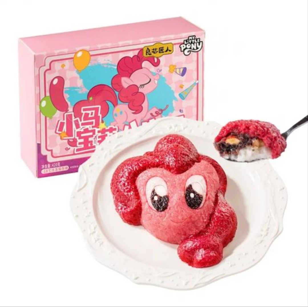 为了俘获“20后”的心,叮咚买菜还联合“小马宝莉”推出了6款联名商品。尤其是良芯匠人小马宝莉八宝饭,神还原了角色的五官与鬃毛,色彩鲜艳,真正做到了“吃玩一体”,家长们纷纷扫码下单,为年夜饭餐桌增添童趣。