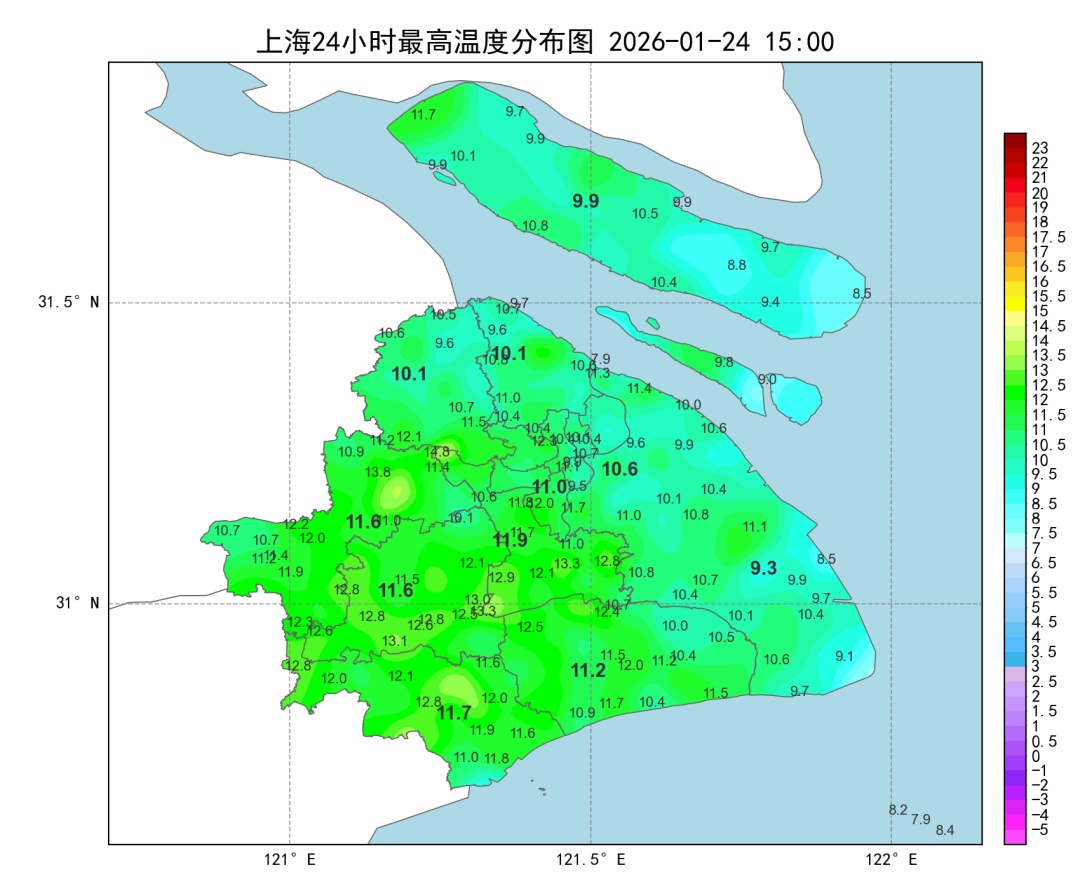 今晨气温依旧低迷,市区徐家汇站最低气温2.8℃,郊区中最低的崇明仅有-4.4℃。白天暖阳相伴,加上偏东风坐阵,全市大部最高气温都回升至10℃以上,天晴风小,户外体感还是比较温暖舒适的。