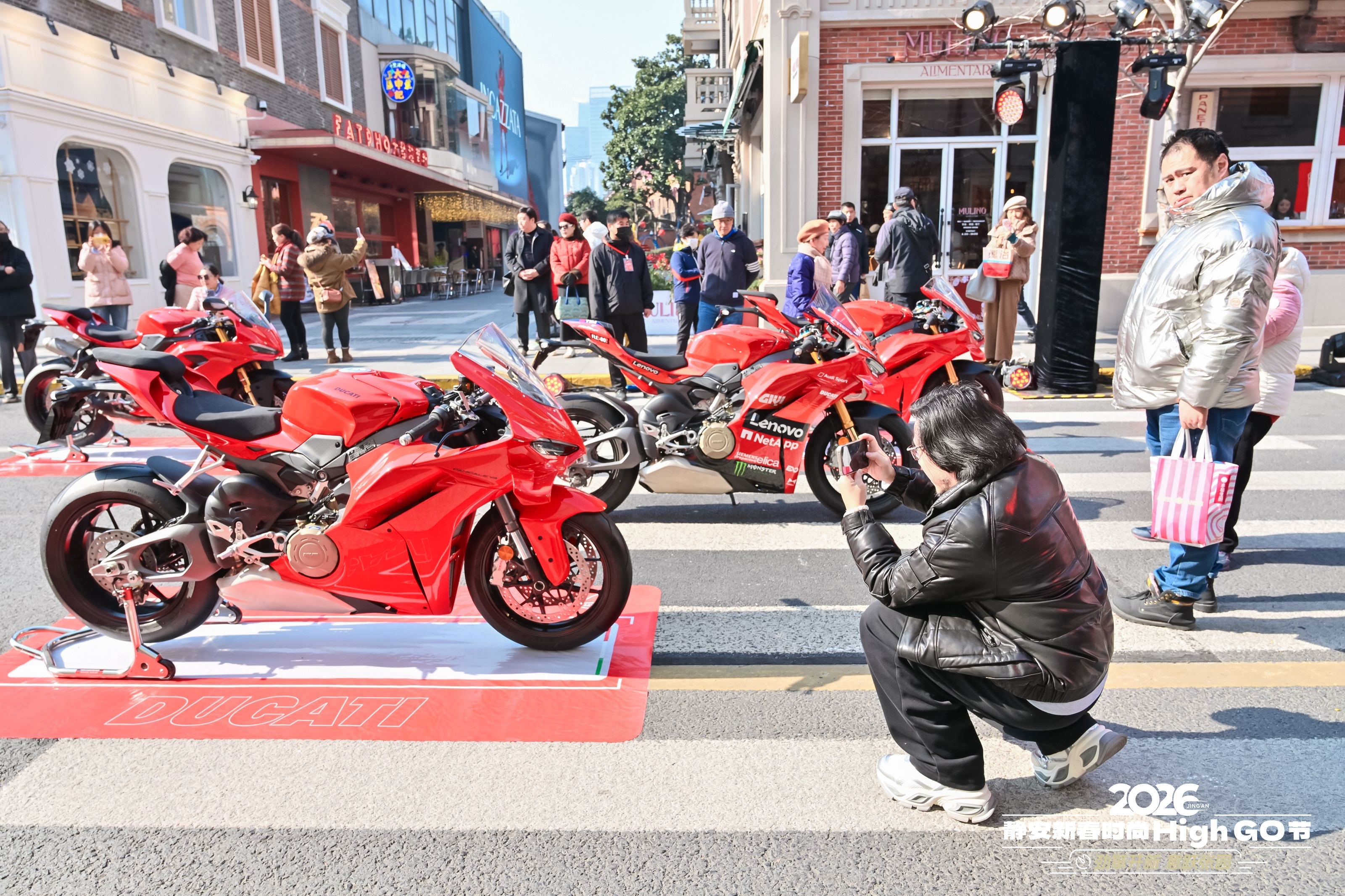 “5、4、3、2、1”倒数计时响起,充满仪式感的方格旗挥舞,一辆红色杜卡迪摩托车飞驰而过,首届2026静安新春时尚HighGO节热力启幕。