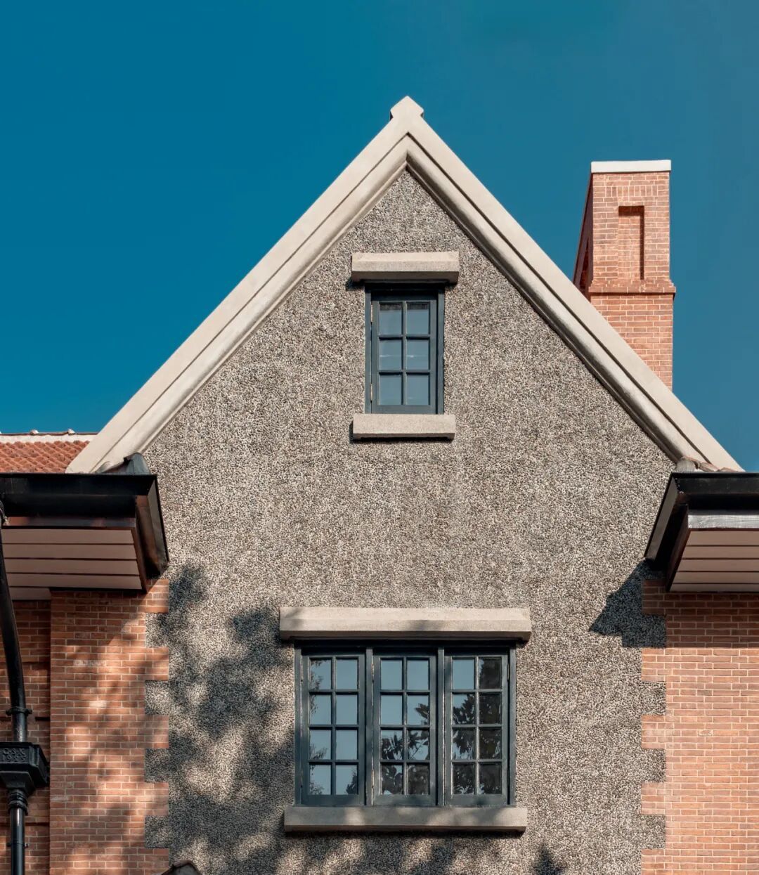 外墙卵石修复便是施工团队遇到的首个“硬骨头”。“老洋房卵石要三分之二嵌入墙体、三分之一外露,材质、粒径、排列方式都直接影响风貌原真性。”陶凌介绍,团队联合专家反复考证,比对数十种卵石的材质与粒径,制作10种排列样板,最终选定最贴近历史原貌的方案,仅外墙修复就耗费卵石10余吨,让百年墙面重焕温润质感。而对于破损较轻的东山墙卵石立面,团队则摒弃大面积翻新,采用专用清洁剂配合低压冲洗的“微干预”方式,实现新旧痕迹的和谐过渡。