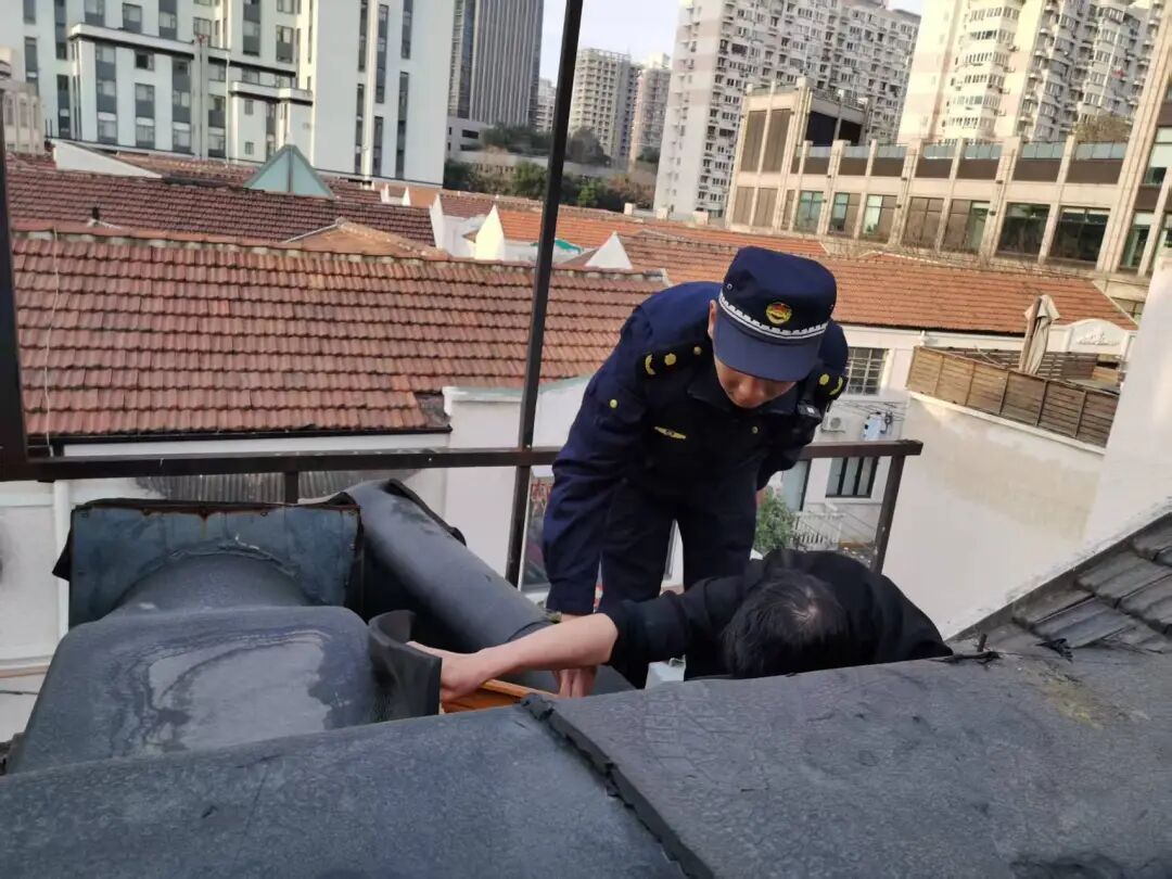 为查明油污来源,执法人员沿检修通道爬到商户楼顶检查油烟管道情况,发现油烟管道设备存在老化迹象,但不是导致地面油污的原因,遂要求经营者加强油烟和异味处理设施及管道的维护保养,以防油烟扰民,避免引发持续性商居矛盾。