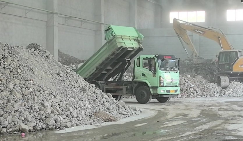 北部建筑垃圾资源化利用中心负责人杨彬彬介绍:“我们设置了两类投料口,分别对应装修垃圾和拆房(垃圾),经过破碎、筛分后汇入同一条生产线,这样既节约了场地,也提升了整体处理效率。”