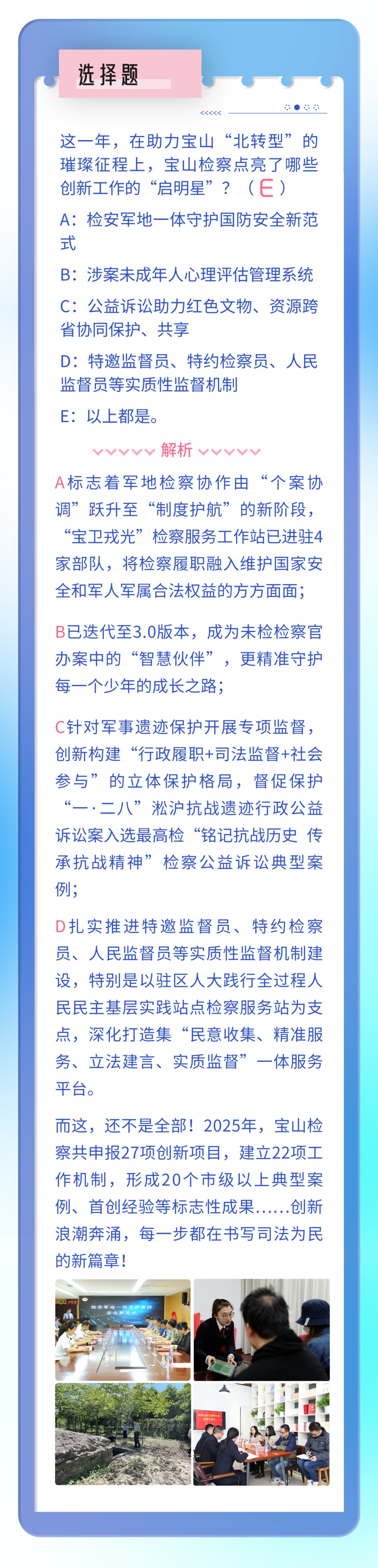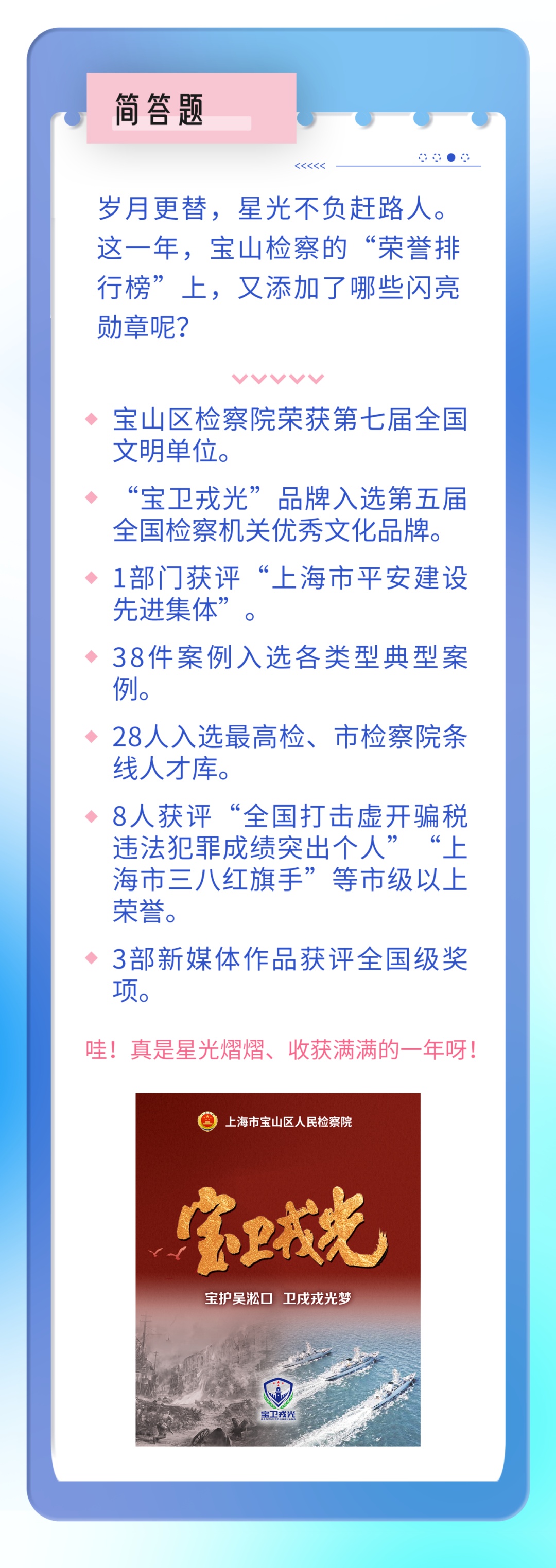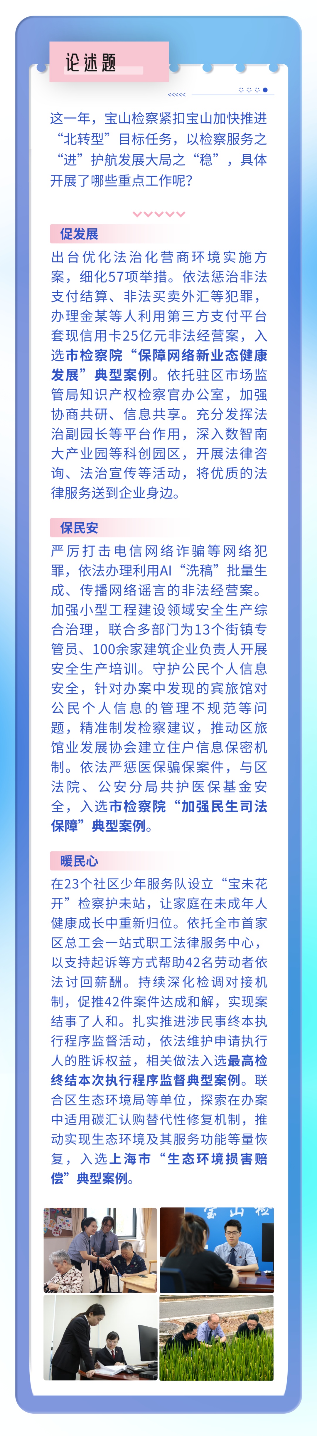 站在新征程新起点,宝山检察将继续以“闯”的精神、“创”的劲头、“实”的作风,在宝山“北转型”的壮阔图景中,持续书写无愧于时代、无愧于人民的检察新答卷!