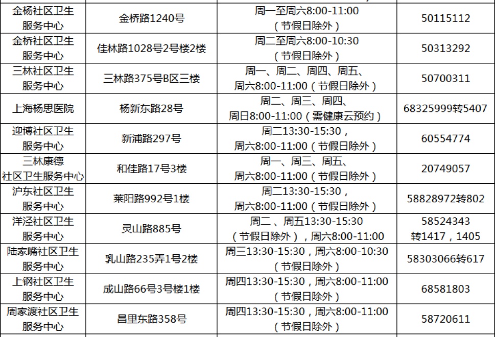 目前,我国已正式将人乳头瘤病毒(HPV)疫苗纳入国家免疫规划,对2011年11月10日以后出生、年满13周岁的女孩,免费接种2剂次双价HPV疫苗。区疾控中心整理了浦东新区免疫规划HPV疫苗接种门诊信息,详见↓