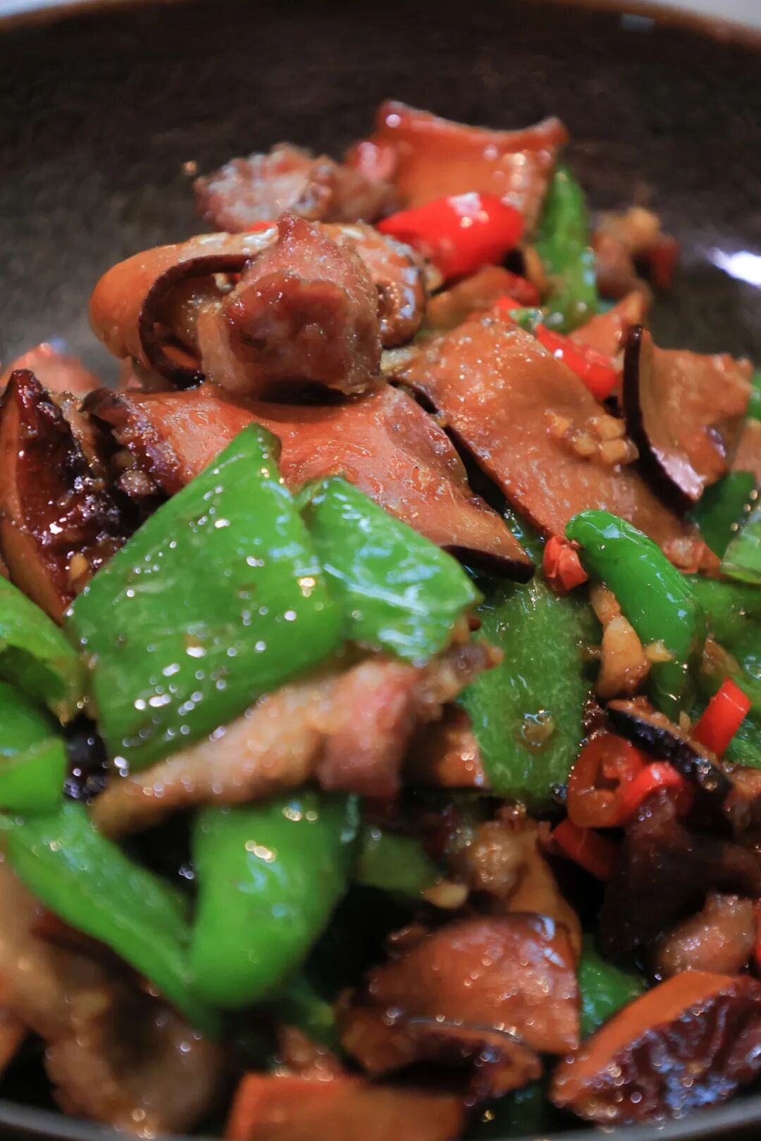 在云南,牛肝菌被誉为“菌中贵族”,因肉质肥厚、色如牛肝而得名。小炒牛肝菌在传统基础上创新,增加少许青红椒丝点缀,调味上更克制,保留菌类最本真的鲜美。