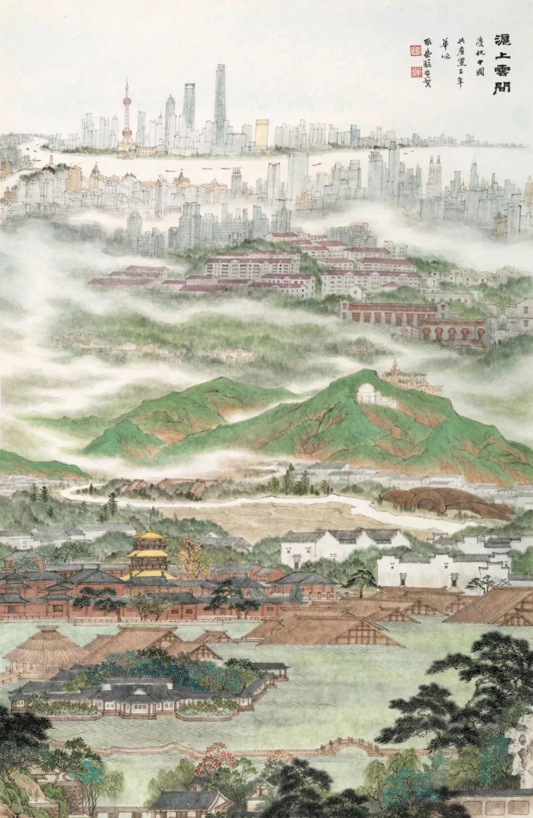 张艺蓝以“在场的山水”为创作核心。她从传统勾皴点染技法出发,将笔墨语言延伸至现代城市景观,探索传统山水的当代转化。在她看来,今天的山水不再是远离现实的理想桃源,而是承载当代人奋斗、栖居与向往的容器。她以“生”与“在”回应传统山水的“隐”与“逸”,“生”是生长与生机,“在”是当下在场与真实存在。通过将工业场景、城市空间与古寺禅意融入画面,她希望观者能在作品中找到自己的生活坐标,看见时代中“当下的在场”。此次展览对她而言,既是对创作成果的展示,也是一次与观众共同探讨“我们的山水”如何成为精神家园的宝贵契机。