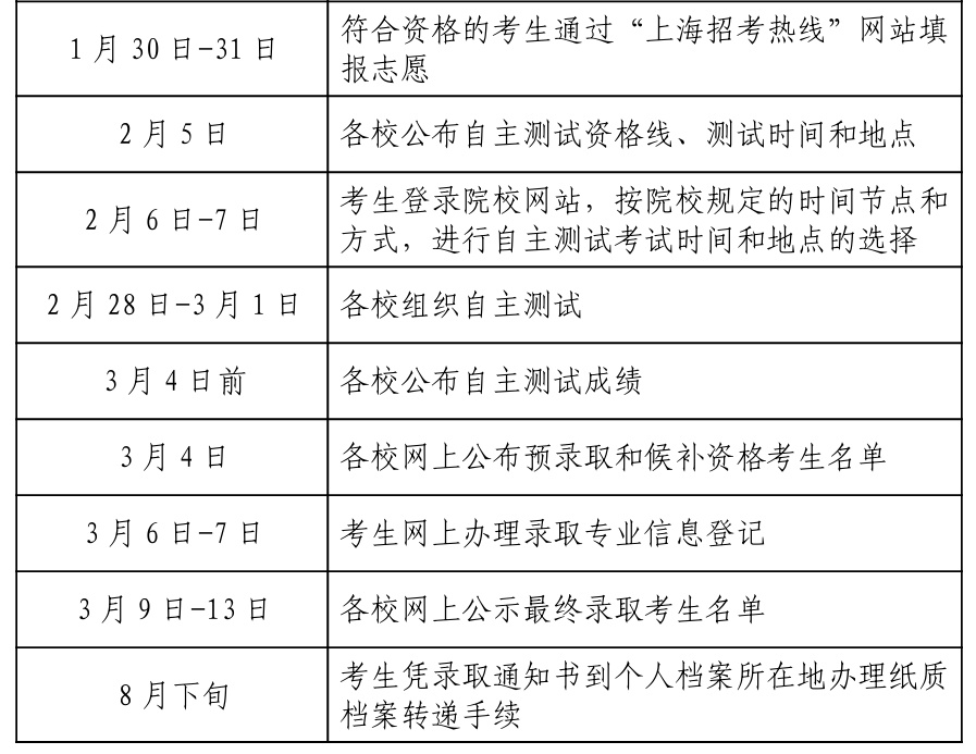 2月5日,招生院校将公布各招生专业的自主测试资格线及测试安排,多位招办老师都提醒考生和家长,春考志愿填报在上海市教育考试院网站进行,但诸多相关信息,如自主测试资格线、入围名单、自主测试时间选择、预录取考生名单、候补录取考生名单等,须通过报考院校的网站查阅,并根据院校的安排参加自主测试。