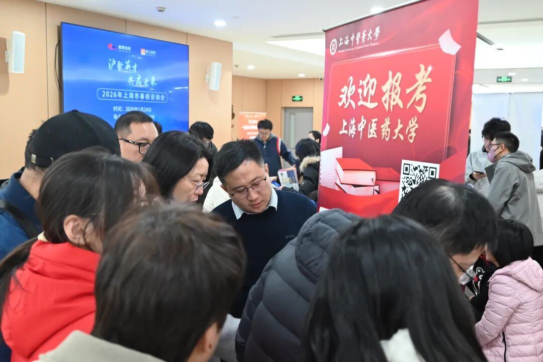 1月24日,由中国教育在线主办的“沪聚英才,共启未来”2026年上海市春招咨询会举行,上海理工大学、上海中医药大学、上海对外经贸大学等21所高校摆开摊位,2000余考生、家长现场咨询。