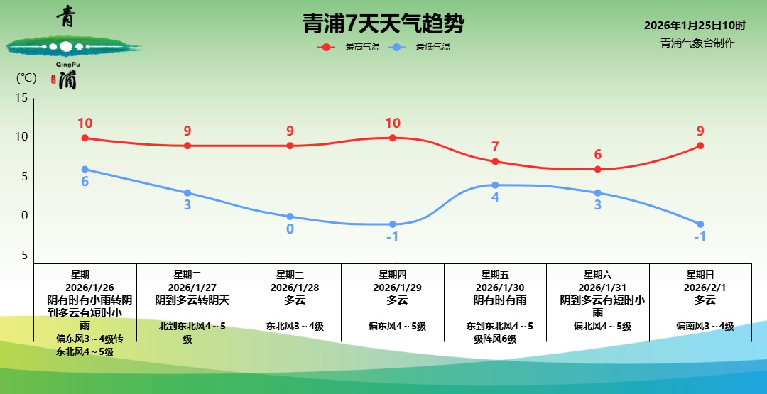 青浦今天云系增多,多云到阴为主;傍晚到上半夜转阴到多云有短时小雨。偏东风4-5级,气温较昨天略有回升,今天最高温度12℃。