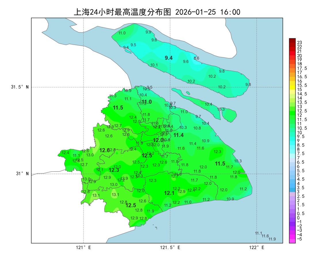 今天上海在大片云雨区覆盖中,天空阴沉沉的。虽然阳光隐身,但暖湿气流悄悄发力,升温节奏小小加速,全市最高气温大多在11~13℃,徐家汇站12.0℃。预计今天夜里短时小雨陆续报到。