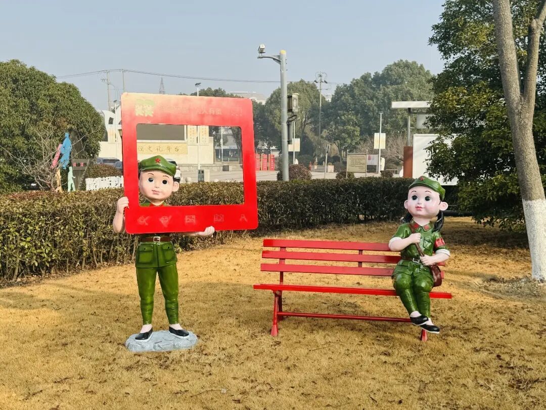 上午,记者来到漕廊公路239号看到,施工人员正在搬运一座座崭新的单体雕塑,将其摆放至规定地点。除了具备爱国主义教育功能,雕塑还结合了休闲座椅和拍照框,可供市民沉浸式休闲打卡。而另一边,红色故事宣传区更是融入了《护塘锄奸记》《一口铁锅》等本土红色故事,情景交融的双拥文化广场让不少退役军人感到十分亲切。