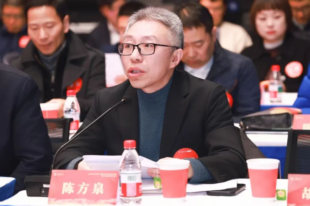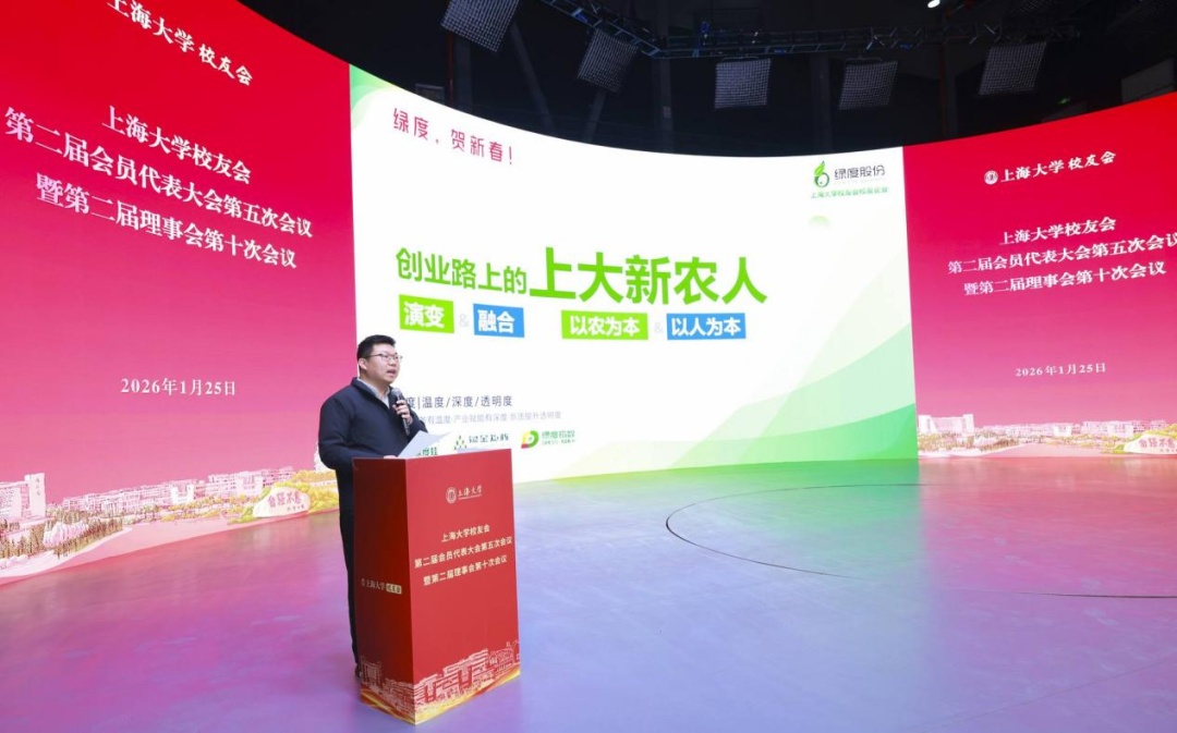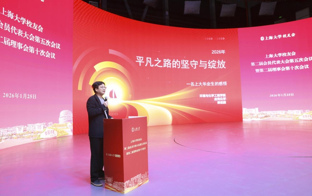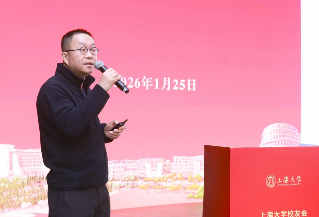 学校发展规划部部长王刚向大家介绍《上海大学“十五五”事业发展规划》。天津捷强动力装备有限公司董事、副总经理、2008届校友郭俊鹏,上海绿度信息科技股份有限公司董事长、总经理、2012届校友邹晓明作为校友企业家代表进行分享。