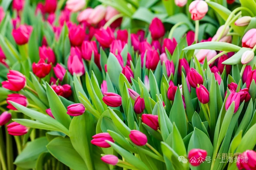 当上海的寒风还裹着霜华,复兴公园里早已打翻了春的调色盘。5万余株郁金香亭亭玉立,粉的娇嫩、红的热烈、黄的明媚。在料峭寒意中铺成一片绚烂花海,让踏冬而来的市民恍然坠入“春日幻境”。