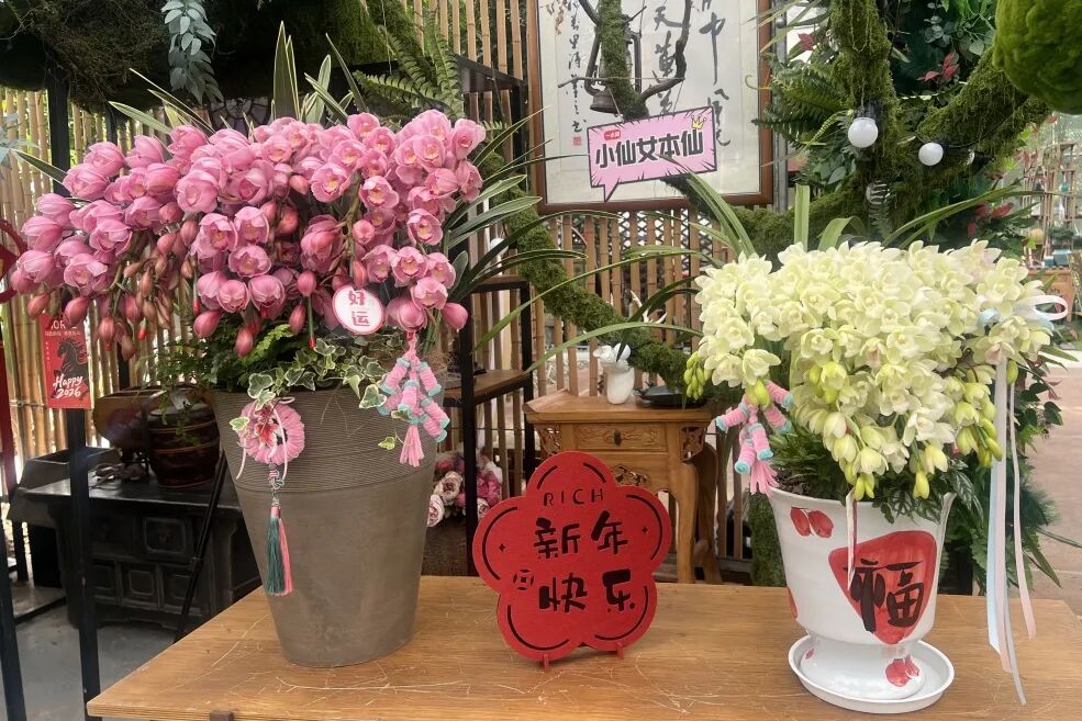 “我们每年都会举办年宵花展,除了对展厅精心布置以外,我们的花艺师还会根据市民的喜好,通过巧妙设计,对各种年宵花卉进行创意搭配,让每一盆花都充满艺术气息。”一水间园艺科技有限公司市场负责人介绍说,“很多游客是通过社交媒体推荐专程前来,也有很多老顾客,每年临近春节都会习惯性地过来看看,挑选几件自己喜欢的盆栽。”