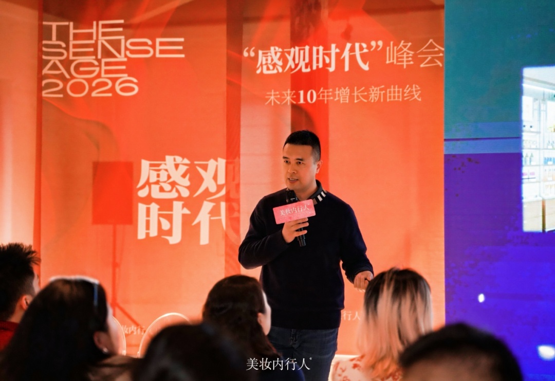 寒笑率先带来年度分享《2026增长变量:感观时代》,从行业发展脉络出发,深刻剖析了“感观”取代单一功效、成为产业核心增长曲线的底层逻辑。在他看来,随着功效成为产品基础门槛,视觉、触觉、嗅觉等多维度的感观体验,已成为品牌与消费者建立情绪链接、实现差异化竞争的关键,这一观点引发全场嘉宾深度共鸣。