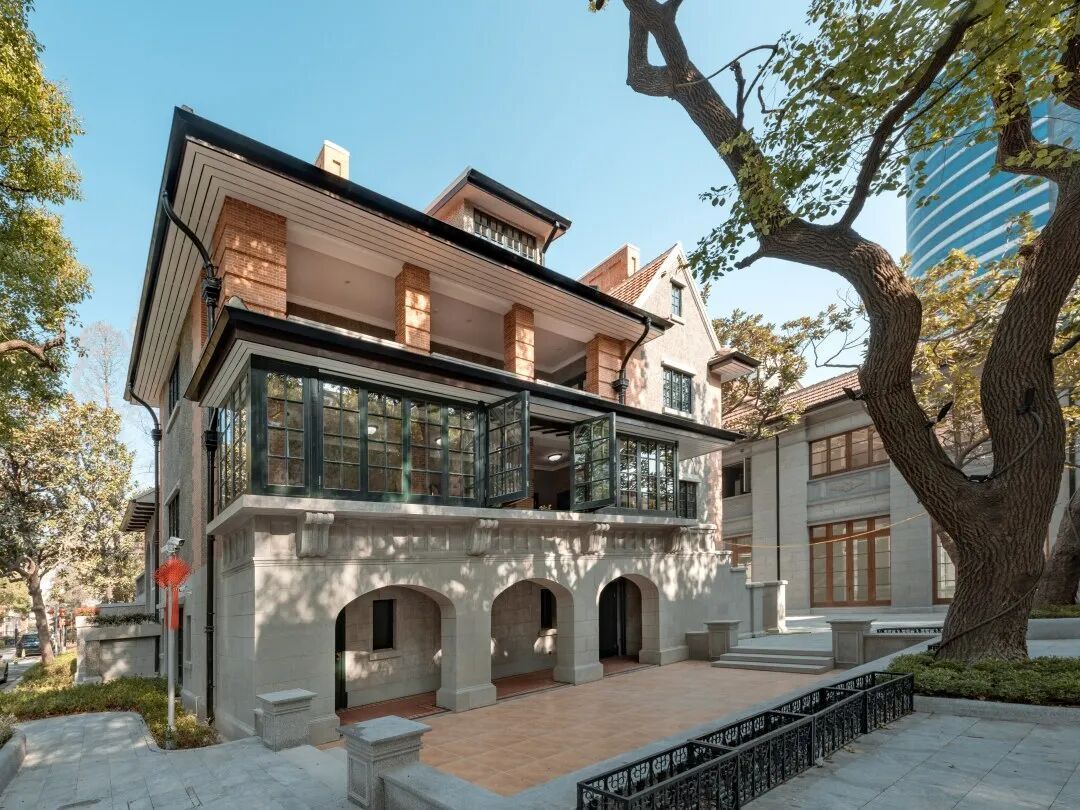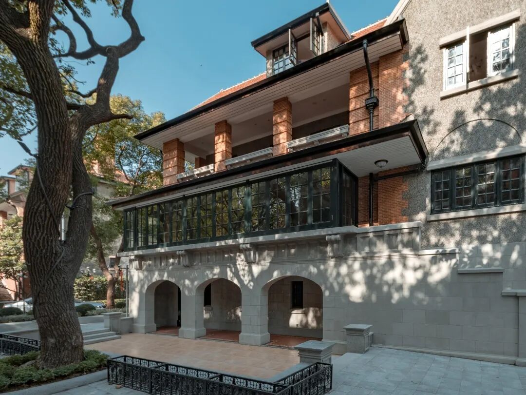 拆除原后期加建围墙,将室外庭院广场整治后向愚园路打开,将历史建筑优雅地展现在公众视野,营造开放共享的城市公共空间,提升城市空间品质。