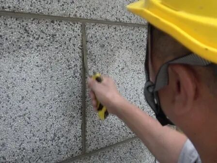 工艺流程:破除空鼓→刮糙打底→界面处理→粉刷面层→冲洗石子→面层养护→勾缝处理