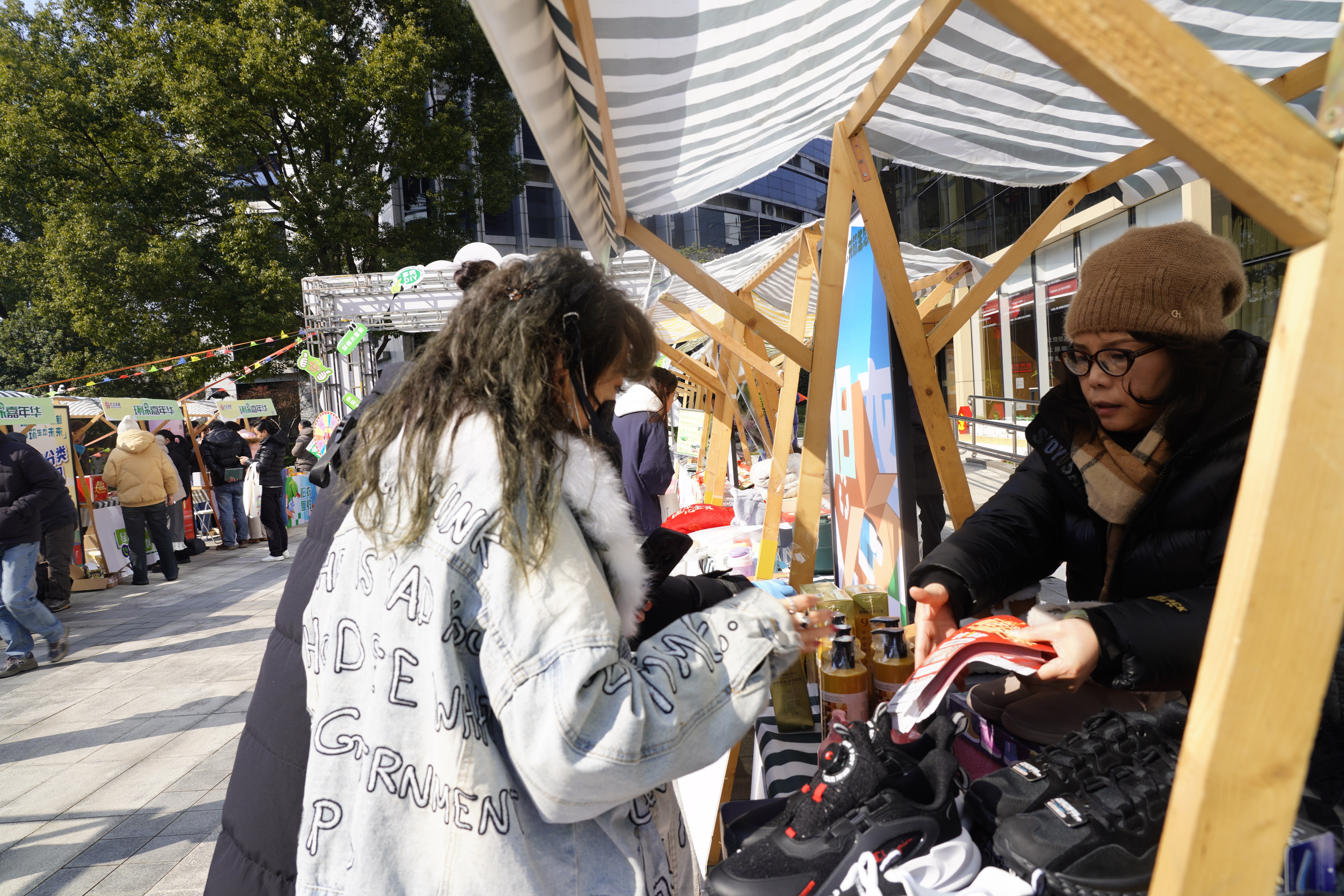 现场还特别设置了闲置兑换类摊位。工位抽屉里废旧不用的电子产品、家中不穿的旧衣物被拿到活动现场,称重兑换成抽纸、洗手液等日用品,不仅为家中“减负”,又实现资源循环再利用,让环保行为转化为实实在在的收获。