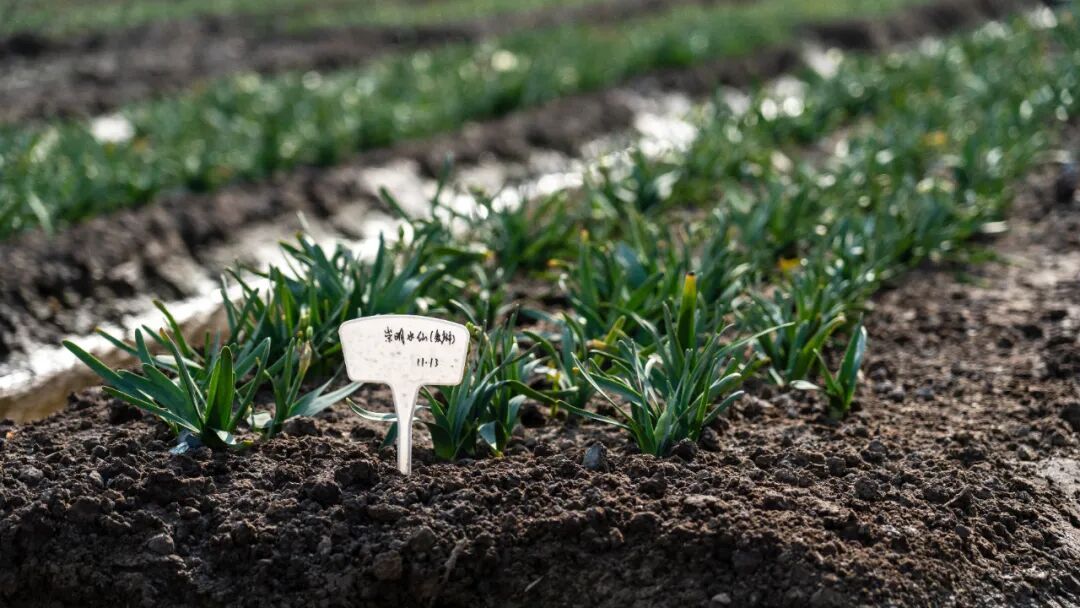 市场探索的同时,种源中心的另一项基础性战略工作正在试验田里稳步推进。占地约5亩的试验田被划分为三个功能区块,系统性地收集、保存并研究来自国内外的优质水仙种质资源。