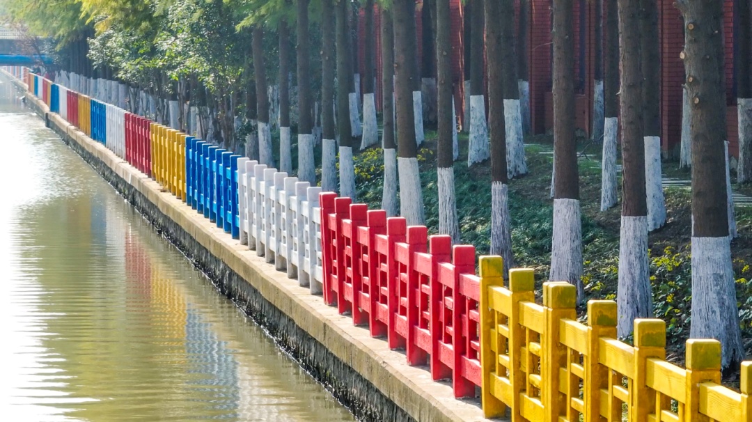 曙光西河两边的水杉高大、树冠浓密、地被较空,通过补植耐阴的兰花三七、红花石蒜、南天竹、红果金丝桃等植物,在西侧校区外的林带中增设健康步道,将开放式绿地与水边林带连成一体,成为人们观赏植物和健身锻炼的好去处。