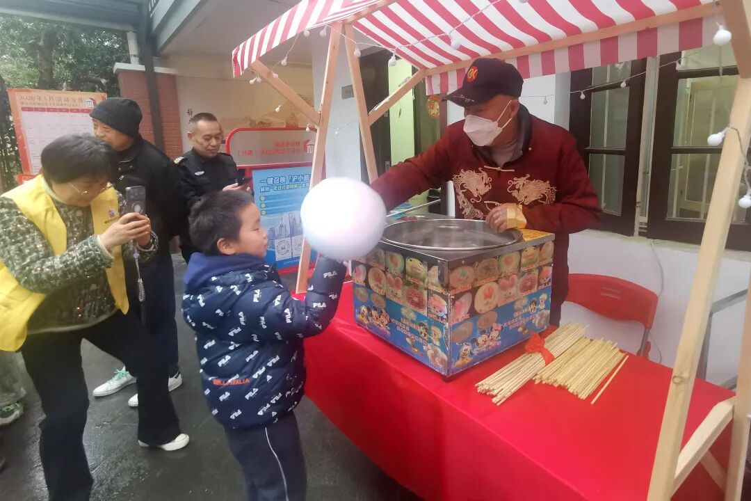 香甜软糯的腊八粥“打开”了本次市集的“开关”。居民们一边品尝着热乎乎的腊八粥,一边闲话家常,“有糯米的香味、红枣的甜味,这一口喝下去,感觉年味一下子就来了。”这碗承载着传统年俗的热粥,不仅驱散了冬日寒意,更搭建起邻里间情感沟通的桥梁。