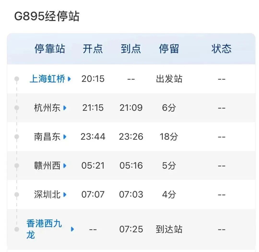 现周二、周三、周四 增开G895/G896次 夕发朝至高铁动卧 由上海虹桥始发经杭州东 南昌东、赣州西、深圳北 终到香港西九龙站 加上原来的 周五、周六、周日、周一 开行的G899/G900次列车 一张高铁票 串起六座城 每一站都有专属的风景与烟火 沿线的美好 等你来亲自解锁 上 海 从上海虹桥出发,外滩的万国建筑群与陆家嘴摩天楼隔江对望,夜幕下的灯光秀璀璨夺目;东方明珠广播电视塔直插云霄,登顶可俯瞰全城美景,感受魔都的繁华与活力;豫园、城隍庙里,明代江南园林与老上海民俗文化交融,九曲桥、湖心亭尽显古典韵味。 美食更是让人欲罢不能,红烧肉浓油赤酱、酥烂入味,一口下去全是幸福感;油爆虾壳脆肉嫩、鲜甜十足,是老上海的经典味道;还有南翔小笼包皮薄馅大、汤汁鲜美,轻轻咬开一个小口,吸一口汤汁,再蘸上醋,回味无穷。 推荐景点:外滩、东方明珠、南京路步行街 推荐美食:红烧肉、油爆虾、南翔小笼包、上海生煎包 杭 州 高铁飞驰至杭州东,邂逅独属于江南的水墨诗情。西湖的“一山二塔三岛”美成画卷,春走苏堤赏柳,秋临湖畔看平湖秋月,雷峰塔与保俶塔隔湖相望,随手拍都是国风大片;西溪湿地的“一曲溪流一曲烟”,是城市里的天然氧吧,漫步其间身心皆舒。 杭帮菜的鲜醇刻在骨子里,西湖醋鱼酸甜鲜嫩,龙井虾仁裹着淡淡茶香,东坡肉肥而不腻入口即化,片儿川的鲜爽唤醒味蕾,一口尝尽江南滋味。 推荐景点:西湖、灵隐寺、西溪国家湿地公园、宋城 推荐美食:西湖醋鱼、龙井虾仁、东坡肉、片儿川 南 昌 抵达南昌,解锁这座英雄城的双面魅力。登滕王阁,赏“落霞与孤鹜齐飞”的千古盛景,触摸千年文化底蕴;走进八一起义纪念馆,回望峥嵘岁月,八一广场的红旗迎风飘扬,满是热血情怀;夜幕下的绳金塔,夜市烟火气升腾,藏着南昌人的小美好。 南昌的早餐江湖藏着惊喜,拌粉配瓦罐汤是标配,米粉筋道裹满秘制酱汁,瓦罐汤炖得软烂入味;藜蒿炒腊肉是秋冬限定,清香解腻,白糖糕外酥里糯,甜而不腻,一口沦陷。 推荐景点:滕王阁、八一起义纪念馆、八一广场 推荐美食:南昌拌粉、瓦罐汤、白糖糕 赣 州 来到赣州,踏入这座满是宋韵的江南古城。江南宋城历史文化旅游区里,古城墙、古浮桥、郁孤台静静伫立,一砖一瓦皆是岁月痕迹;通天岩里石窟造像与摩崖石刻,藏着南方古石窟艺术的精髓。 赣南美食带着浓郁的客家风味,赣南小炒鱼外酥里嫩酸辣开胃,一口就上头;艾米果裹着艾草清香,糯叽叽的超解馋;荷包胙香糯不腻,是客家宴席的硬菜,寓意满满。 推荐景点:江南宋城历史文化旅游区、通天岩、郁孤台 推荐美食:赣南小炒鱼、艾米果、荷包胙、四星望月 深 圳 抵达深圳,感受这座年轻城市的无限朝气。世界之窗汇聚全球经典景观,一天“环游世界”超酷炫;锦绣中华民俗村将中国名胜与民俗表演融合,沉浸式领略中华大美;莲花山公园登顶俯瞰福田CBD,高楼林立间尽是鹏城的繁华与活力。 深圳的美食藏着各地风味,潮汕牛肉火锅鲜切现涮,蘸上沙茶酱鲜到骨子里;广式肠粉皮薄爽滑,淋上秘制酱汁超满足;公明烧鹅皮脆肉嫩,汁水丰盈,满嘴留香。 推荐景点:世界之窗、锦绣中华民俗村、莲花山公园 推荐美食:潮汕牛肉火锅、广式肠粉、公明烧鹅 香 港 一路向南,最终抵达香港西九龙站,解锁港式浪漫。维多利亚港的海风温柔,搭乘天星小轮横渡维港,是体验香港风情的绝佳方式;西九文化区藏着艺术与美好,各类艺文展览、演出轮番上演;登顶太平山俯瞰,维港全景尽收眼底,“东方之珠”的璀璨一览无余。 港式茶点与街头美食让人欲罢不能,菠萝油外皮酥脆内馅绵软,丝袜奶茶丝滑醇厚,云吞面的虾仁云吞饱满弹牙,面条劲道,一口入魂,妥妥的港式味道。 推荐景点:维多利亚港、西九文化区、太平山顶 推荐美食:菠萝油、丝袜奶茶、云吞面 夕发朝至不赶路 六城风光全打包 从江南水乡到繁华港岛 从地道风味到港岛美食 一张高铁票 解锁别样的旅行
