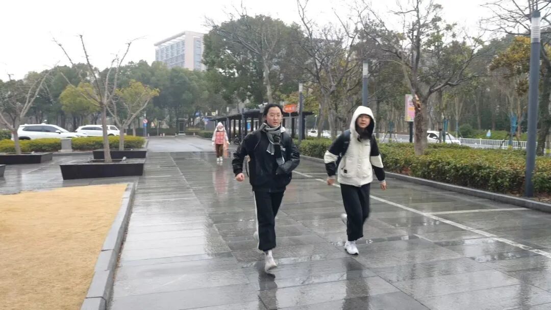 雨滴打湿行人的发梢与肩头,不少人裹紧外套、拉上帽子,快步走过。不过雨幕间也不乏跑步锻炼的身影。市民朱根明已经坚持锻炼二十多年了,今日更是计划在细雨中跑完十公里。