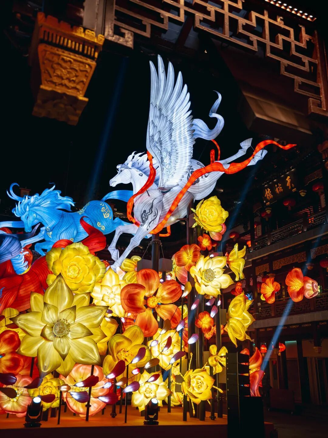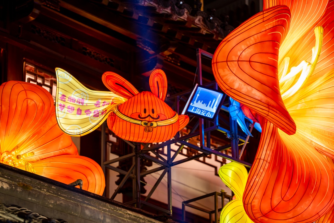 其中,豫园民俗艺术灯区推出《山海奇豫记》第四季《旷野篇》,以“以梦为马,旷野生花”为主题,融合非遗灯彩与数智光影。