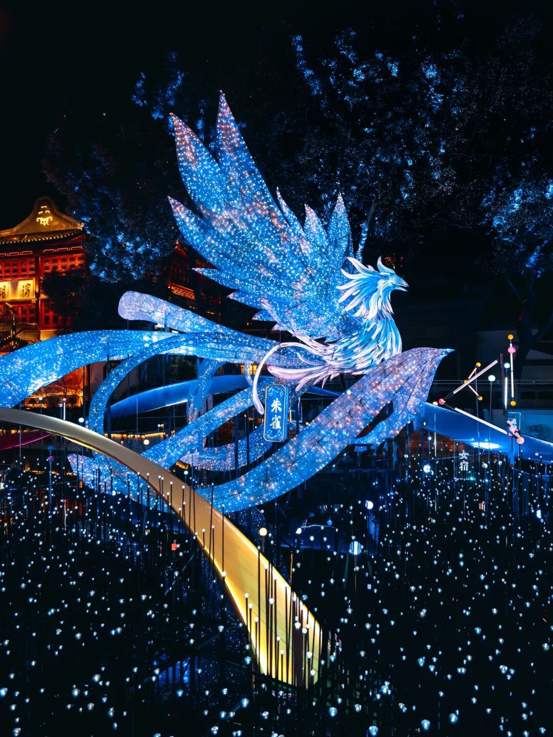 本次灯会强化科技互动,九曲桥定时上演“数字光影流光奇旅”,游客可召唤AI神兽“胐胐”伴游,体验AI拍照、数字灯谜、VR幻境等。