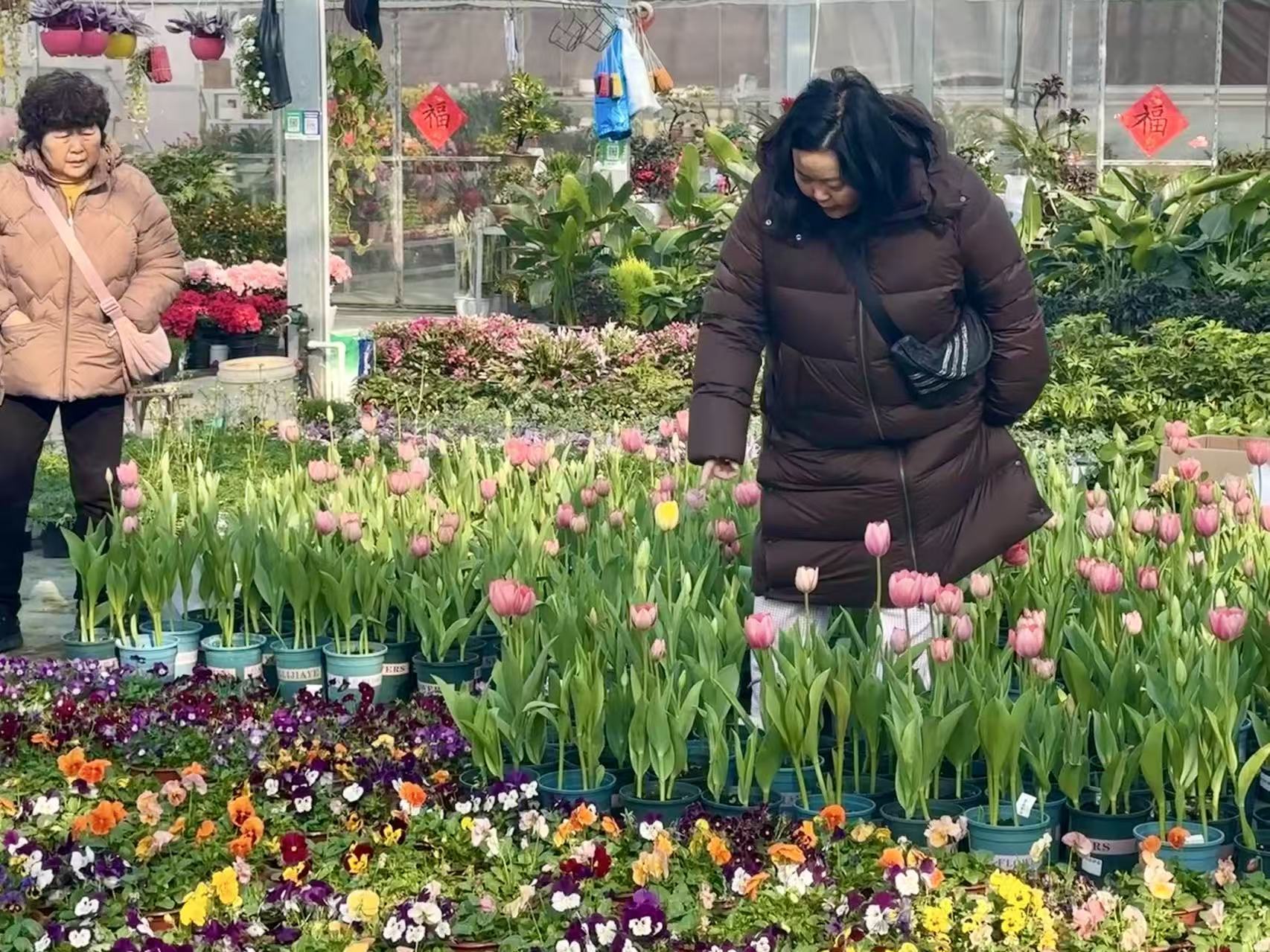 顾客选购年宵花