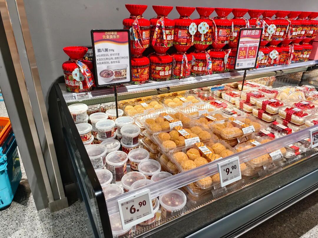 “过了腊八就是年。”一早记者在奥乐齐月亮湾店看到,春联、福字、萌趣的马年吉祥物等春节装饰被摆在入口最显眼的位置,春节氛围渐浓。 在超市的冷藏柜中,一款6.9元310g的腊八粥已经销售过半。开盖加热即食的方式,适合市民的日常生活,不时有顾客前来挑选。 “今天是腊八节,早上来买牛奶,顺手就买两罐腊八粥带回家。”王先生说,晚上加热一下就能和全家人一起吃,很方便。快过春节了,要有点节日的“仪式感”。