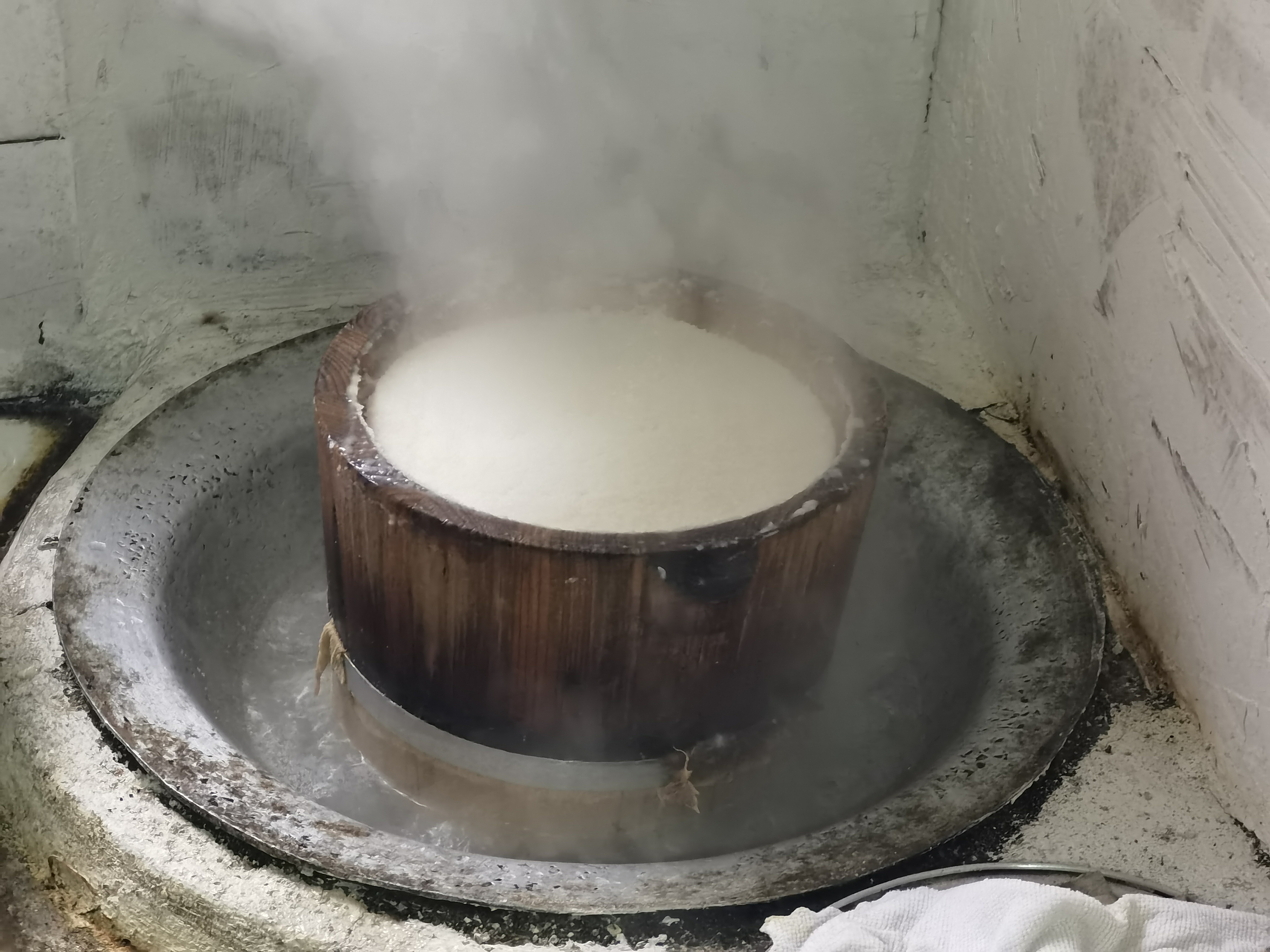 除了腊八粥,小昆山镇当地还流行腊八吃桶蒸糕的习俗。记者来到小昆山镇一处民宅,一股米香扑鼻而来,走近一看,柴火灶上正冒着热气,灶下柴火烧得正旺,一旁的桶蒸糕手艺人陆阿姨正准备制作新一锅的桶蒸糕。她先将糯米粉过筛撒进模具,再用工具铺平,接着放进柴火灶,盖上盖子蒸20分钟即可出炉。“我们做这个糕已经20多年了,腊八和春节每家每户都要吃这个糕,很多人来提前预订。”陆阿姨介绍。