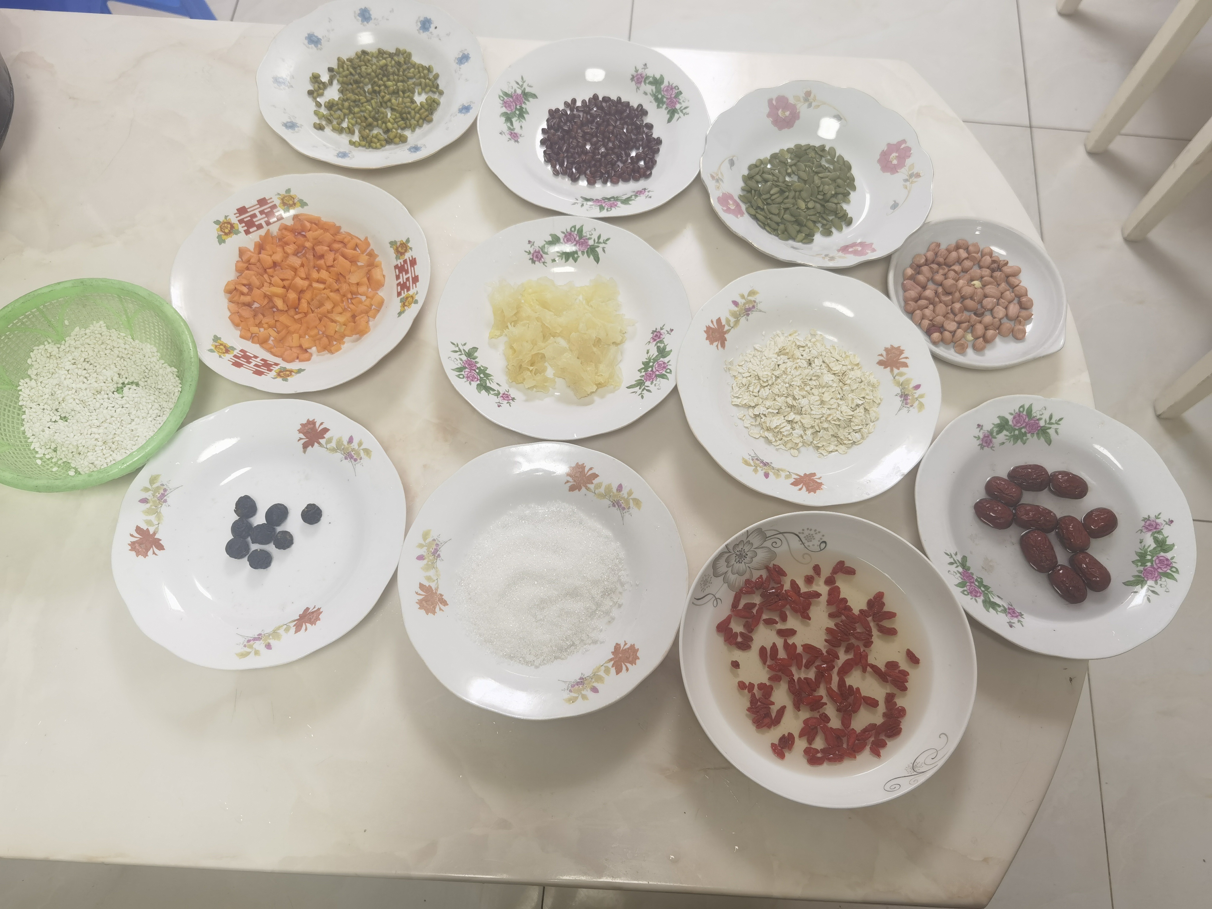 依次将清洗干净的糯米、红枣、红豆、绿豆、枸杞、桂圆、银耳、燕麦、花生、胡萝卜、瓜子仁等十余种食材放入电饭煲中,再熬制1.5到2小时,一锅热气腾腾的腊八粥便做好了。“今天是腊八节,我就叫邻居们、姐妹们一起来吃,他们吃得很高兴,我也开心。”谢阿姨告诉记者。