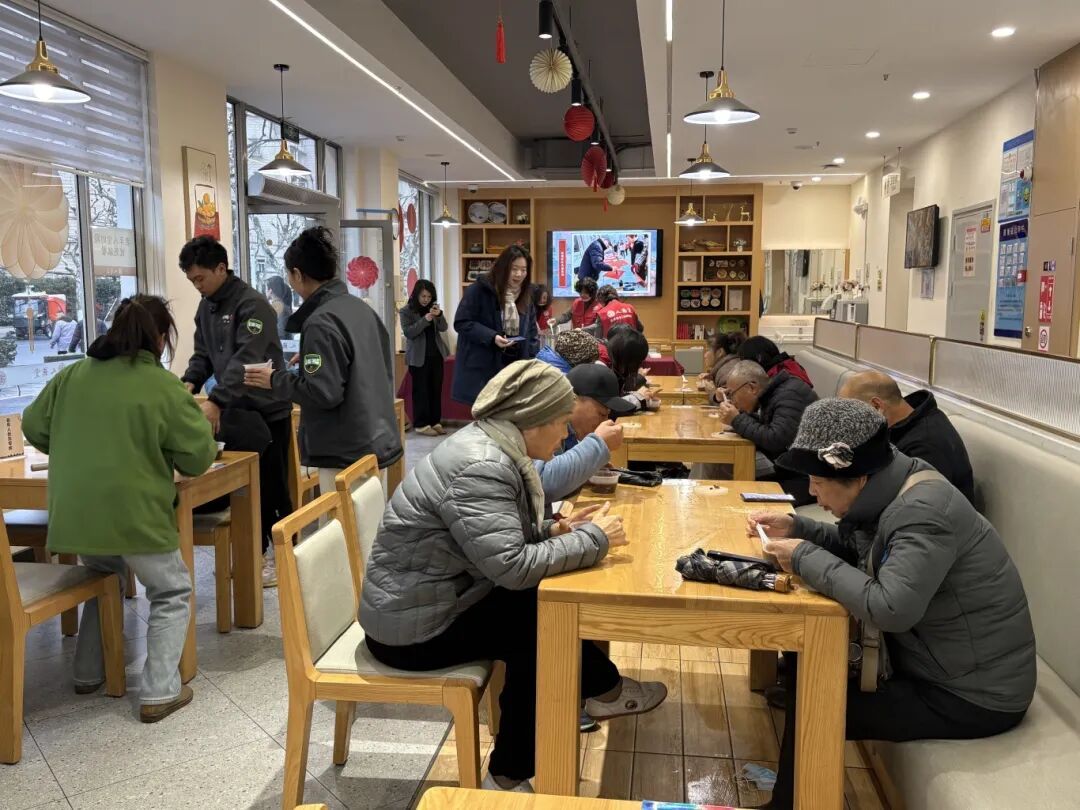 几位在快递站和叮咚买菜的工作人员也被请进社区食堂,吃上一口腊八粥,快递员们的思乡之情涌上心头。今年春节,他们都将留在上海过年,虽然不能与家人团聚,但也深深感受到了上海人民对外来务工者的关爱。“这么冷的天,我们能吃上一碗热粥,真的很开心,很棒。”