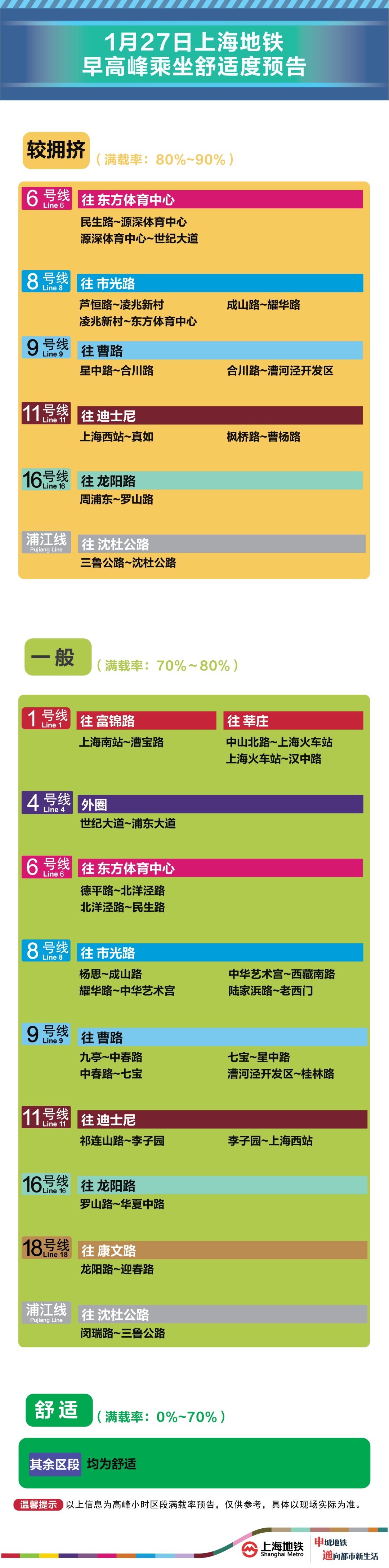 为提升上海地铁早高峰期间出行服务水平,提升乘客乘坐体验,上海地铁向乘客提供乘坐舒适度预告,方便乘客提