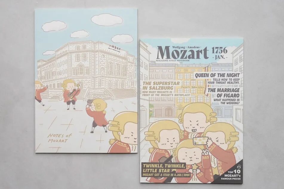 灵感偶遇时,快记下!封面是可爱的莫扎特在萨尔茨堡故居拍照。反面还有正在上海音乐厅广场上拍照打卡的莫扎特!