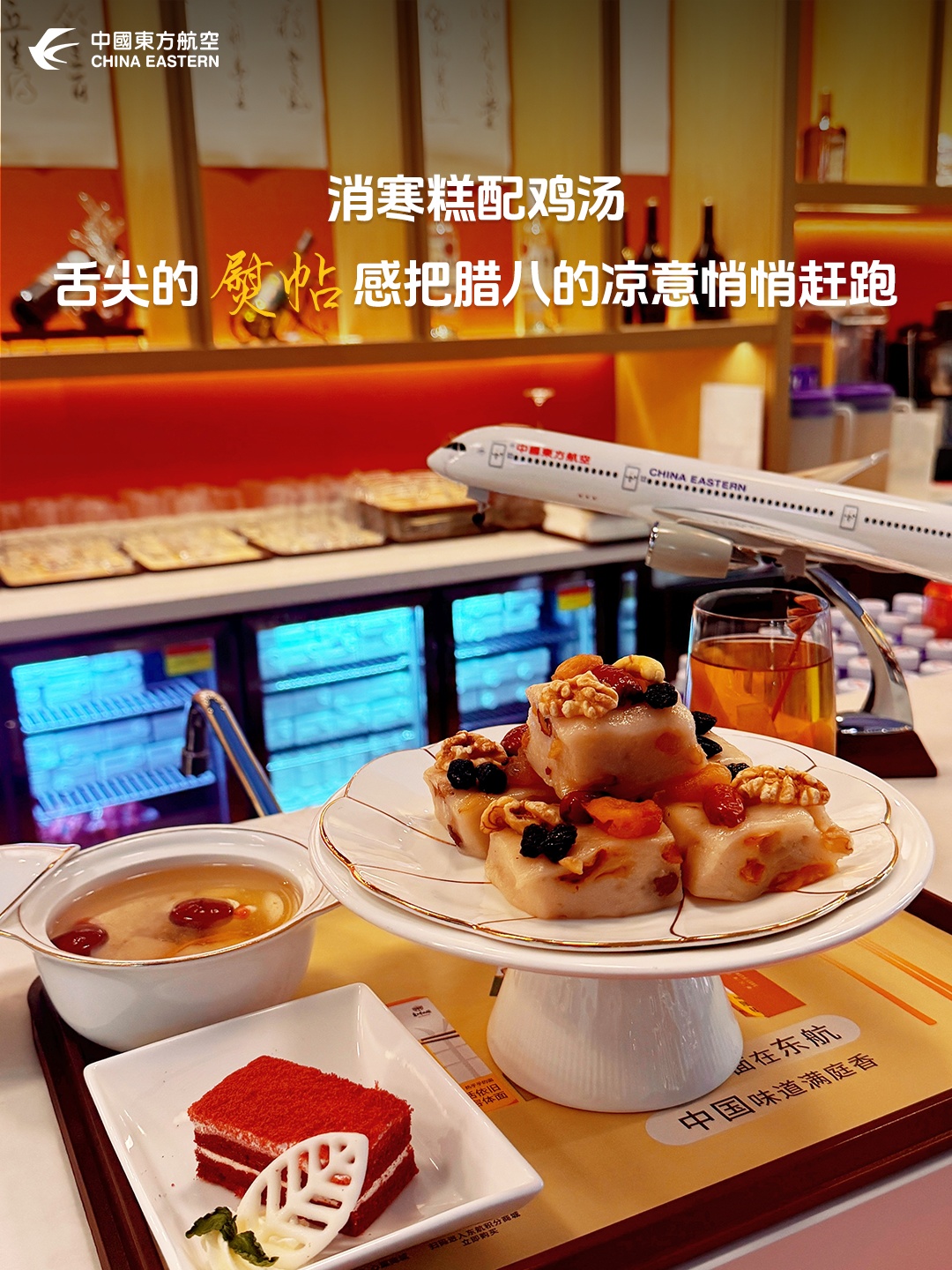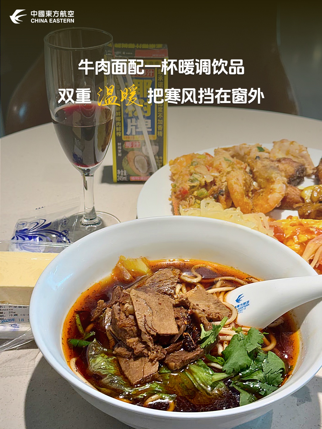 上一周,东航升级冬季暖胃餐单,新增红枣粥、热柠茶等暖心品类;优化高空餐食保温流程,让热乎滋味伴全程;打造休息室小寒限定茶点,给出行添一份暖糯甜香……这些餐食与服务的升级,始终围绕着“让旅途更有温度”的初心。
