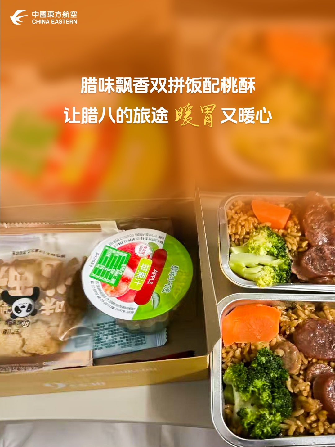 当热乎的粥品盛进餐盒,当清甜的热饮递到手边,当腊味饭的香气漫进客舱——这些藏在东航餐食里的腊八暖意,不会因航程远近而变淡,也不会因岗位不同而缺席。
