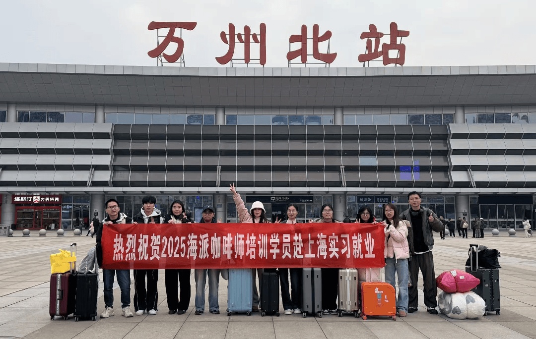 1月11日16时,付俊超、涂羽、陈雅等10名海派咖啡学员出发赴上海就业