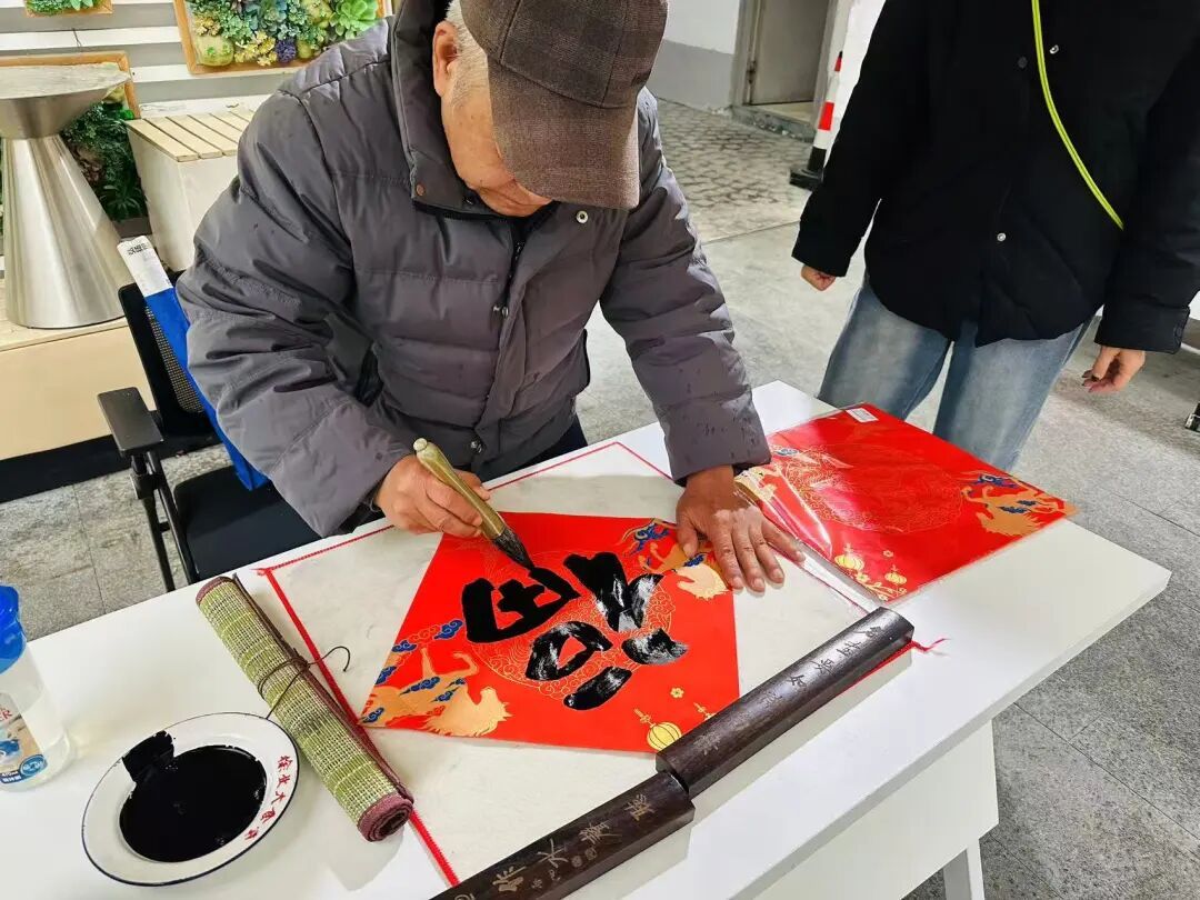 活动还特别邀请书法家岑六顺现场挥毫。只见岑六顺笔走龙蛇,一个个苍劲有力的“福”字跃然纸上。“他们每天穿梭在大街小巷,服务千家万户,保障城市有序运作,我也想借这个机会,把‘福’气送到他们手上。”岑六顺朴实的话语,道出了对一线劳动者的敬意。负责大四居民区保洁的李大姐和董阿姨,喜气洋洋地拿了两个“福”字,还当场扫码入会,“要把这些福气分别张贴在单位和家里,希望新一年万事福到,以后有组织、有依靠,干活更踏实了!”