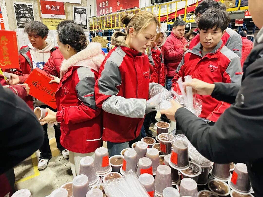 上午9点,嘉亭荟北里门口架起一锅香气扑鼻的腊八粥,安亭镇总工会的工作人员将一碗碗热粥递到快递员、外卖配送员、网约车司机、环卫工人等一线劳动者手中。“接单的路上能喝上一碗热乎的腊八粥感觉很舒服。”骑手张明说。