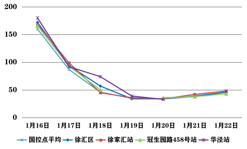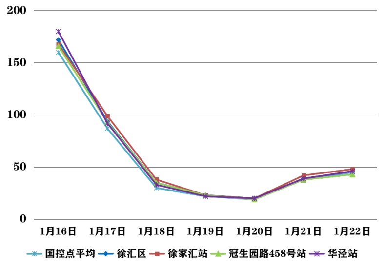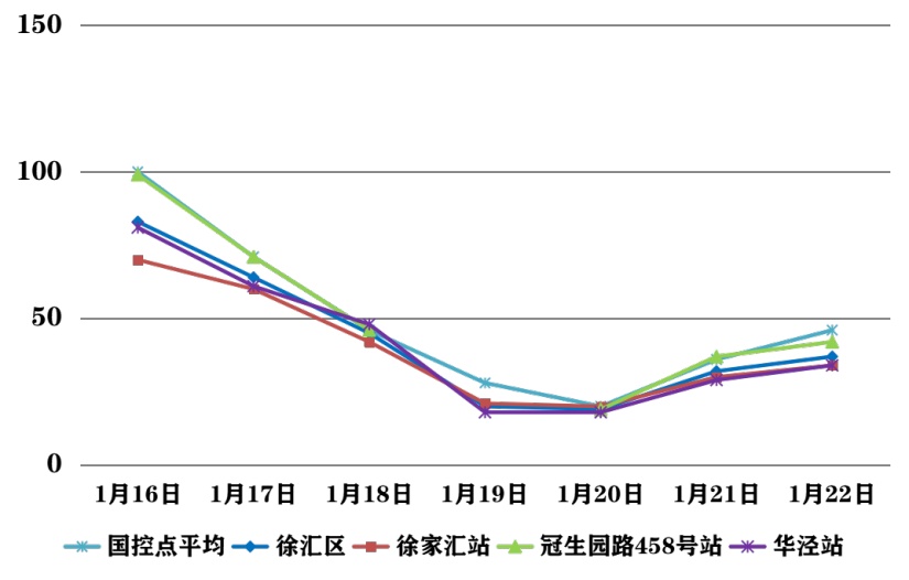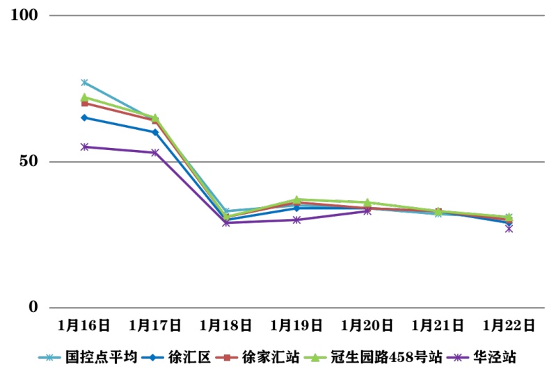 徐汇区上周(1月16日—1月22日)空气质量保持优良。1月16日,受上游污染输送叠加局地累积影响,出现以细颗粒物(PM2.5)为主要污染物的中度污染天气。徐汇区各部门坚持做好污染源管控和道路排堵保畅,加强重点区域巡查和道路洒扫。自17日起,徐汇区空气质量恢复优良。本周,徐汇区空气质量预计保持优良,空气质量可接受,但受外来污染输送影响,细颗粒物(PM2.5)和二氧化氮(NO2)可能对极少数异常敏感人群健康有较弱影响,建议极少数异常敏感人群应减少户外活动。 2026年1月16日—1月22日,徐汇区大气环境质量报告如下所示: 注:徐汇区空气质量数据取国控点和市控点平均值计算得出 1月16日至1月22日徐汇区空气质量等级及主要污染物: 汇宝小科普 雾霾天应尽量减少外出,如果需要外出,应做好防护工作,戴上N95、N99等专门防雾霾的口罩,防护效果较好,市面上常见的医用口罩、纱布口罩、一次性口罩等在防雾霾方面作用不大。