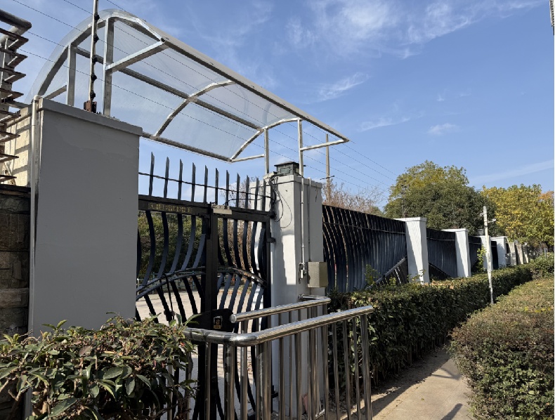 先维修失灵栅栏门,后将五根老旧墙柱的表面打磨平整,清除松动的漆面,对破损部位进行填补修复,再选用环保且耐候性强的涂料均匀涂刷,同时,在居民进出频繁的门口,安装定制化防雨棚,棚体材质厚实耐用,让居民雨天进出无需狼狈避雨。如今,崭新的墙柱整齐排列,洁净的雨棚静静伫立,成为社区一处温情的“门面”。