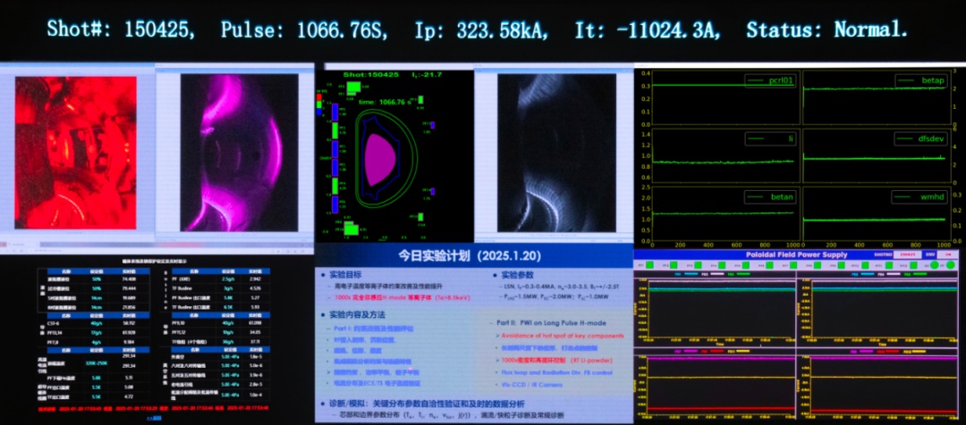 EAST亿度千秒高约束模式等离子体运行世界纪录屏幕截屏。中国科学院合肥物质科学研究院供图
