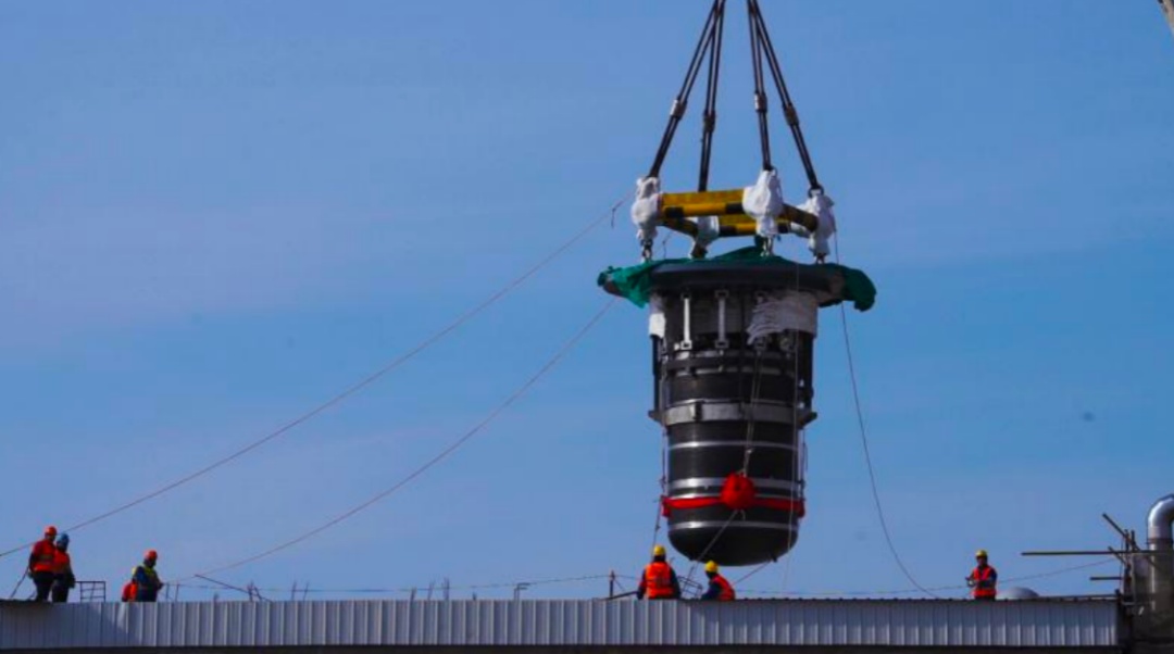 钍基熔盐堆堆本体吊装。中国科学院上海应用物理研究所供图